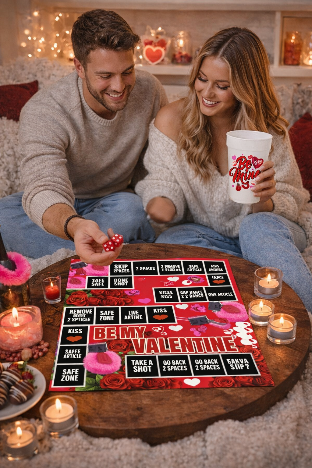 Create a fun, interactive, and fully personalized game night experience with this 20” x 20” Editable Game Board Template with Matching Cup Sticker Templates! Perfect for Valentine’s Day, couples game night, girls night, birthdays, and adult parties, this digital bundle allows you to customize the game to match your theme and vibe.