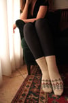 Le patron continent des instructions pour tricoter le jacquard sur la jambe (version 1) ou sur le pied (version 2). Le modèle est tricoté en suivant les instructions de la version 2 dans la taille 3.