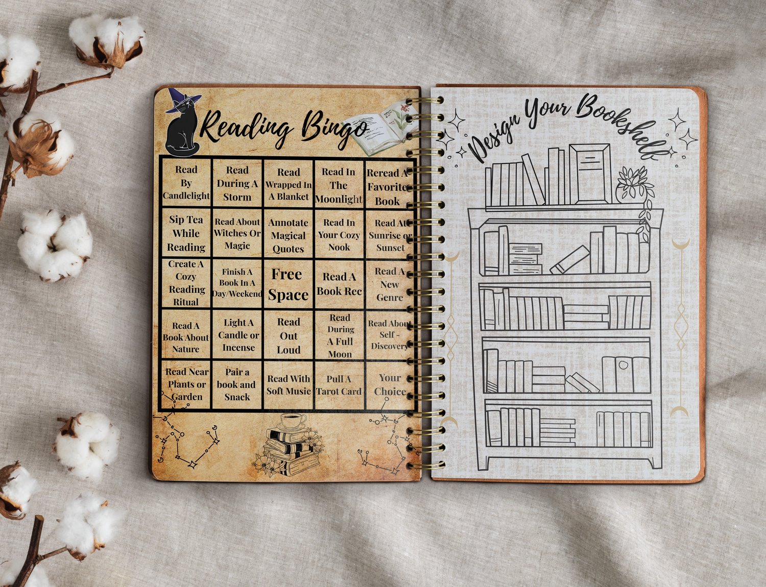 โจ Interactive Fun โ Reading Bingo, Witchy Mood Tracker, Bookshelf Tracker