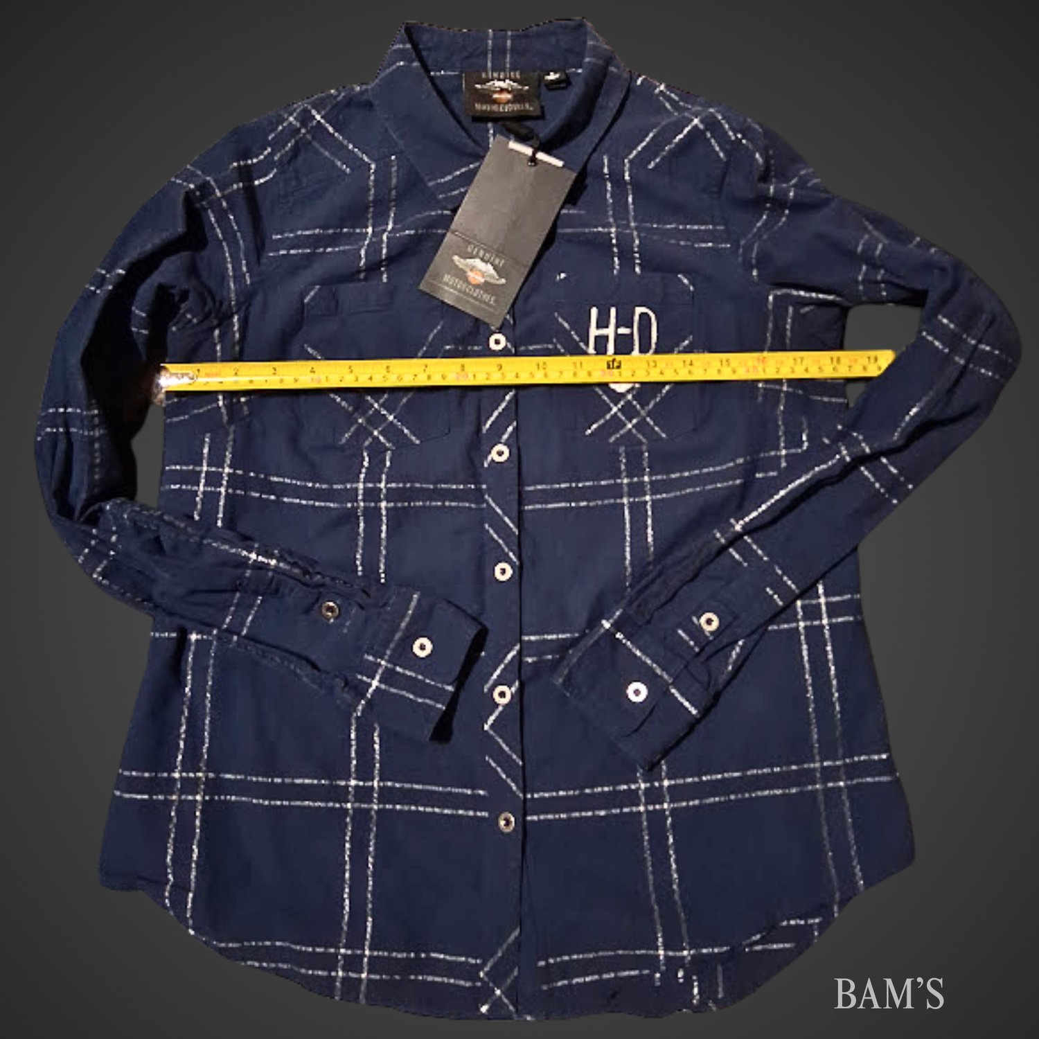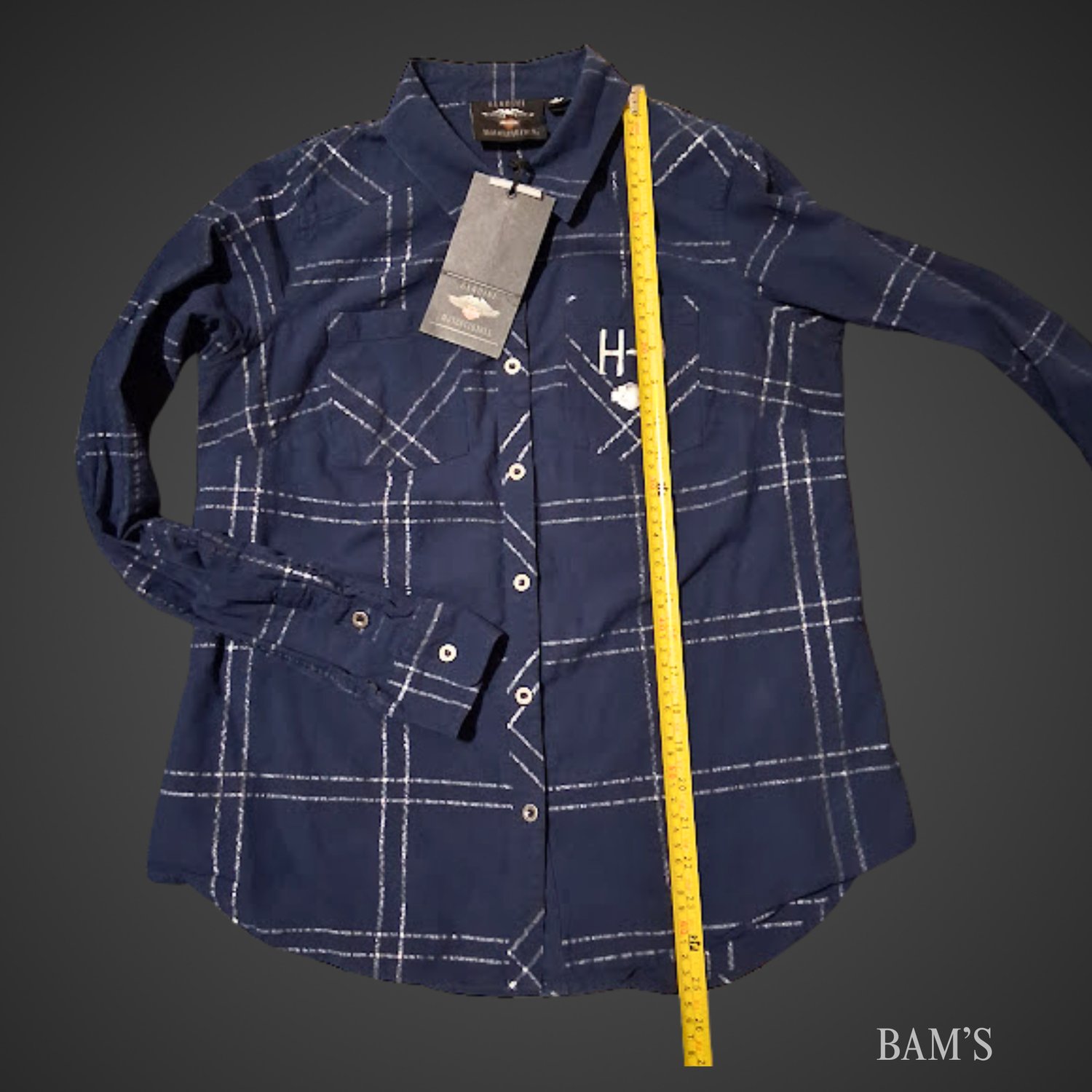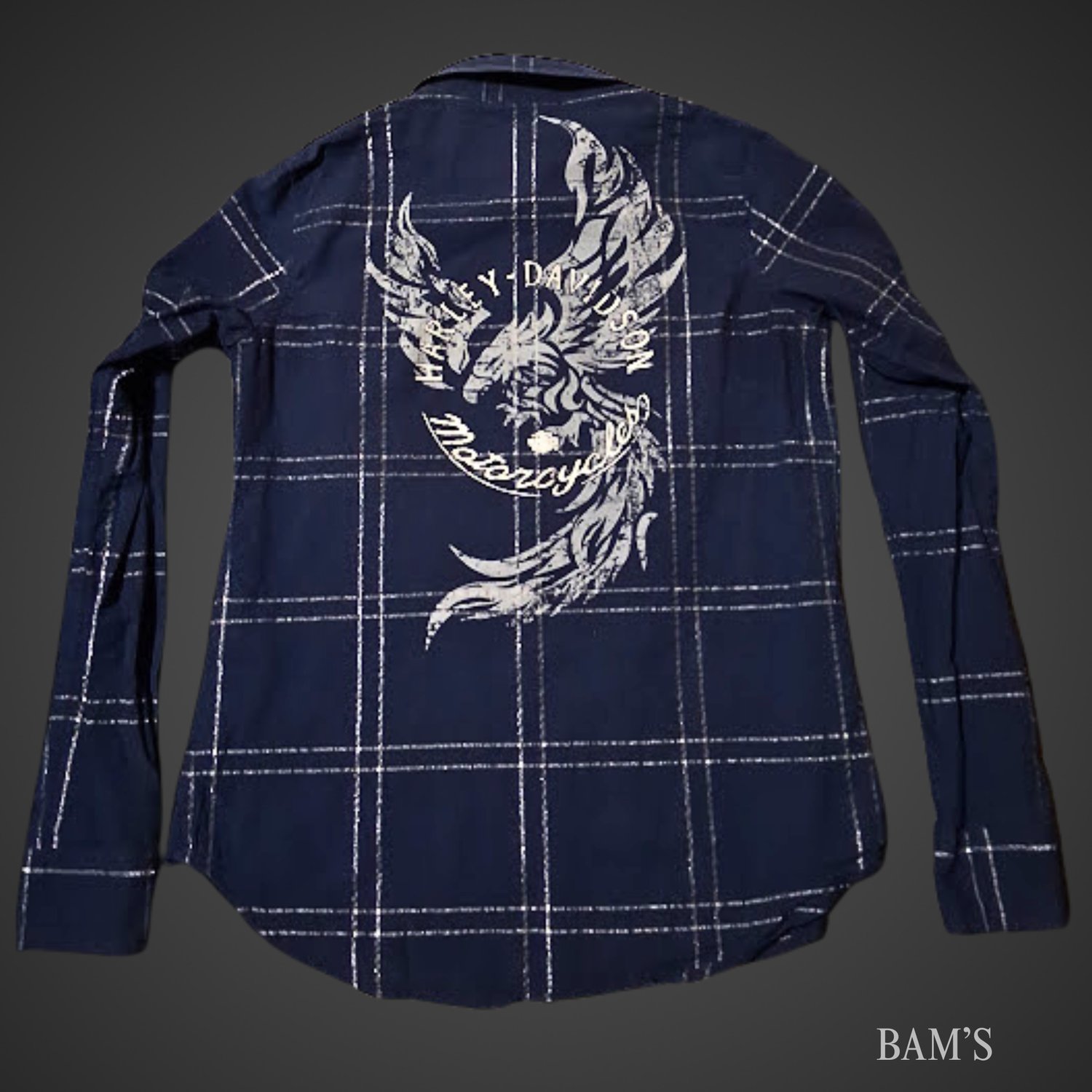 Classic Harley style with a bold back eagle graphic and embroidered H-D chest detail. This plaid button-up is brand new with tags and has that structured, rugged feel Harley fans love. Perfect layered or worn solo.