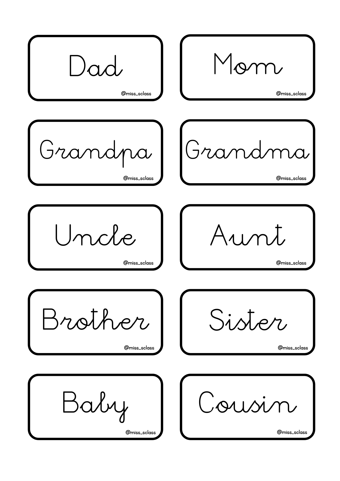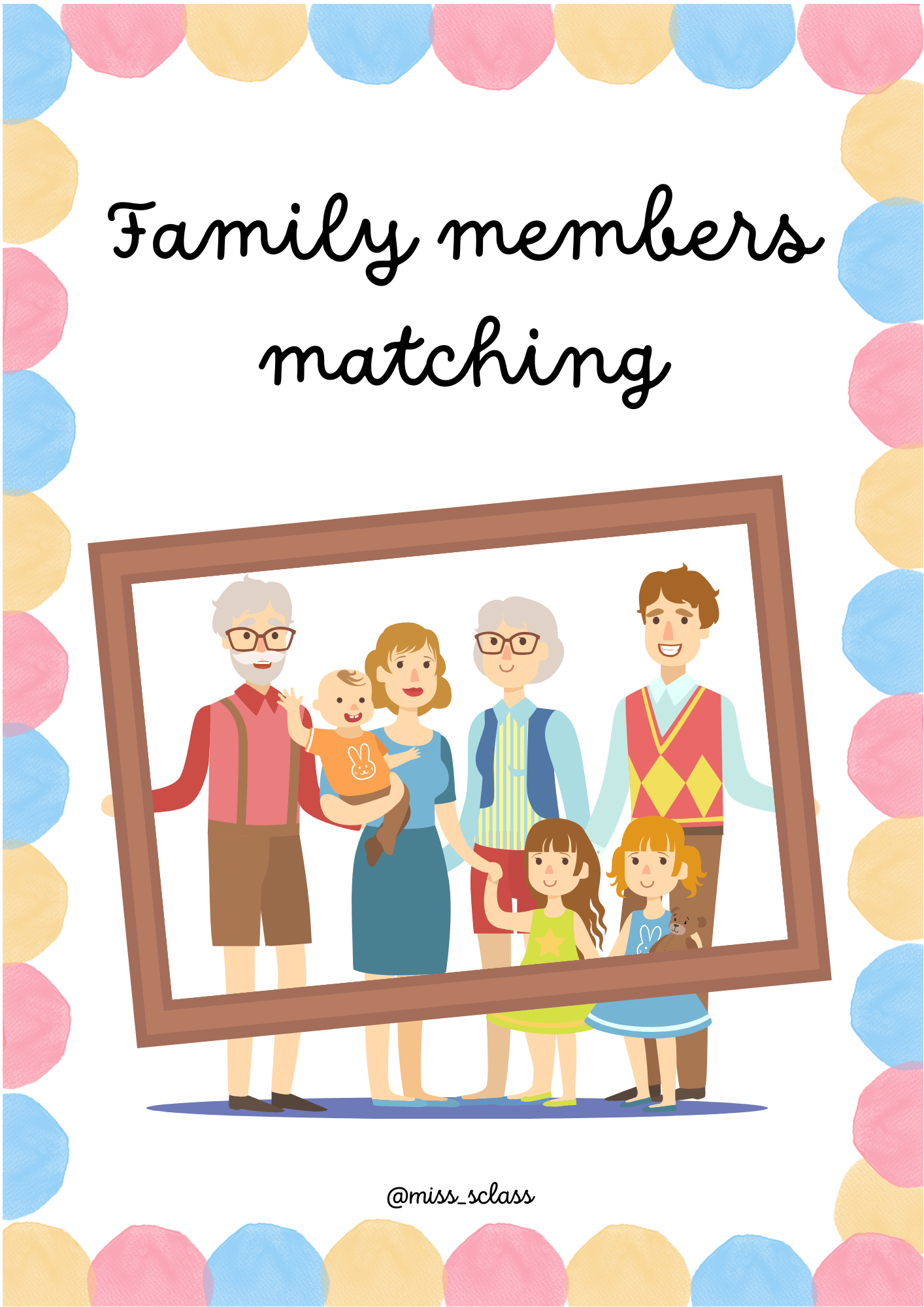 Los alumnos deben unir el nombre de cada miembro de la familia con la imagen correcta.