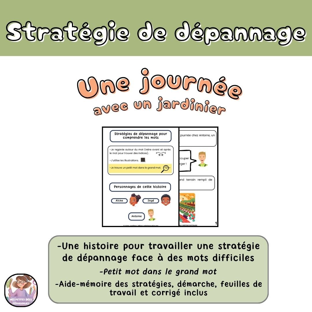 Cette histoire permet aux élèves de travailler la stratégie de dépannage : Petit mot dans le grand mot (morphologie). Les élèves en apprendront également plus sur un métier lors de cette lecture.