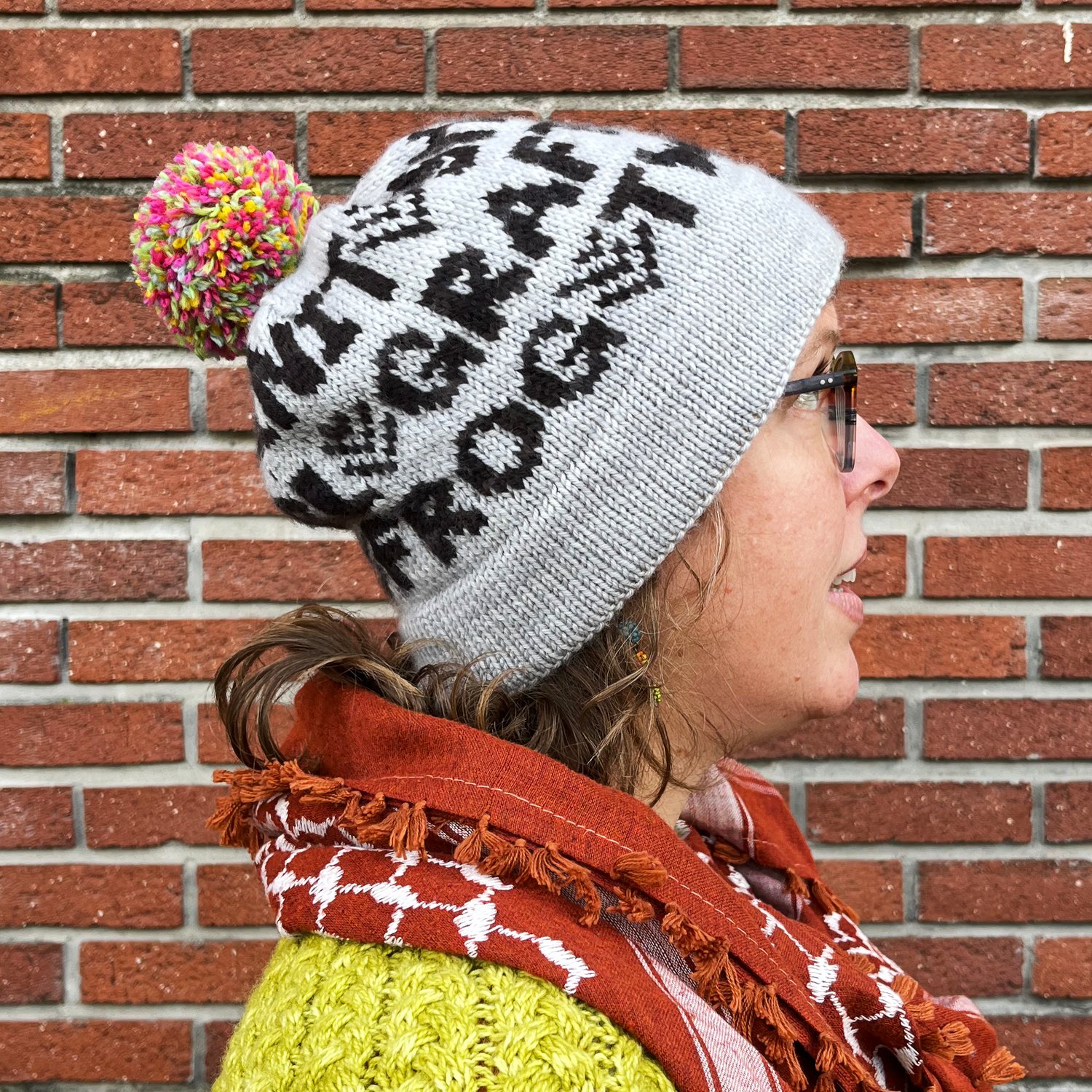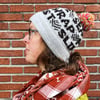 Brim and crown patterns are written, colorwork body is charted (one large chart for each of the four sizes); notes are included for choosing your size, gauge swatching, stranded colorwork. Hat is knit in the round from bottom to top.