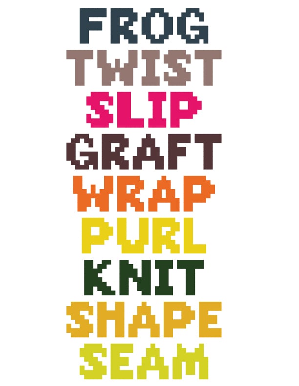 The gauge is flexible: use any yarn in the sport-to-DK range and refer to a sizing table to determine which of the four sizes to make to achieve your desired circumference. You can also start with choosing a size and finding the gauge to match—each chart differs with what’s between the words, so the smallest size is more minimal and the largest has more decoration.