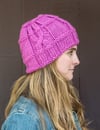 I used this cable pattern for a cardigan many years ago (Cable and Rib Cardigan #129), and have always loved it. There are only 3 rounds of cabling in the entire hat, so if you like a little bit of cabling but are not an experienced cabler, this is the hat for you!