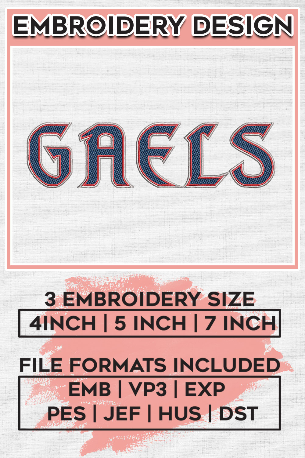 Saint Mary's Gaels Wordmark Embroidery Designs, NCAA Saint Mary's Gaels Machine Embroidery Designs, NCAA Logo embroidery designs, Ncaa Gaels Logo, Digital Download