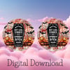 This digital design features fierce jack-o’-lanterns, spooky spiderwebs, blood splatter, and flying bats, all centered around a bold coffin statement graphic. Perfect for Halloween lovers, gothic vibes, or anyone ready to slay spooky season in style!
