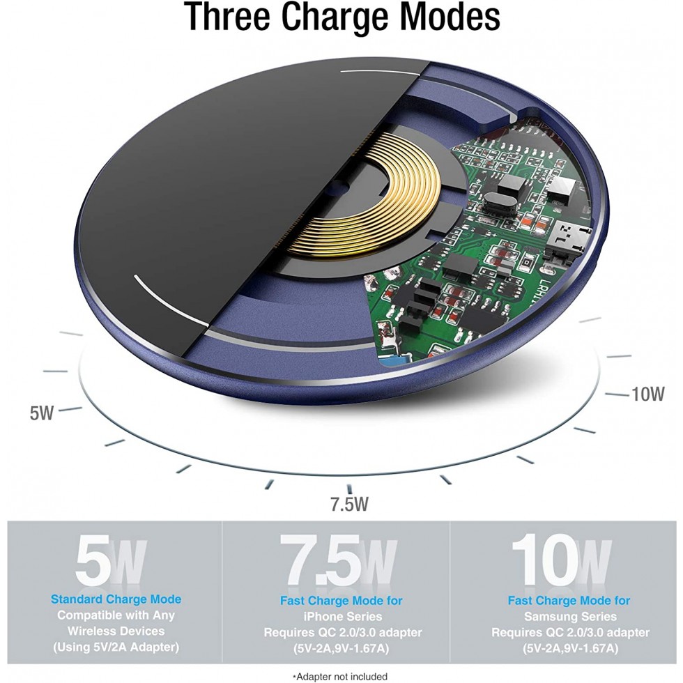 - 【Ultra Slim】5mm – Slimmest wireless charger. Durable mirror panel and aviation aluminum . Simple and fashion.