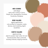 + Detailed Hex Codes, RGB, and CMYK values for each color
