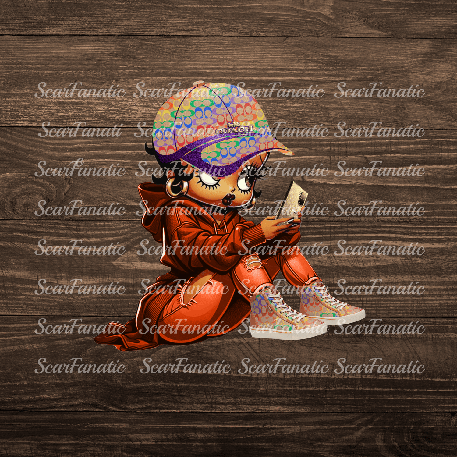 Black Betty Boop in Orange Sweatshirt, Rainbow Cch Ball Cap, ripped jeans/leggings, Rainbow Cch boots, Sublimation, PNG, DTF, 300DPI, high resolution