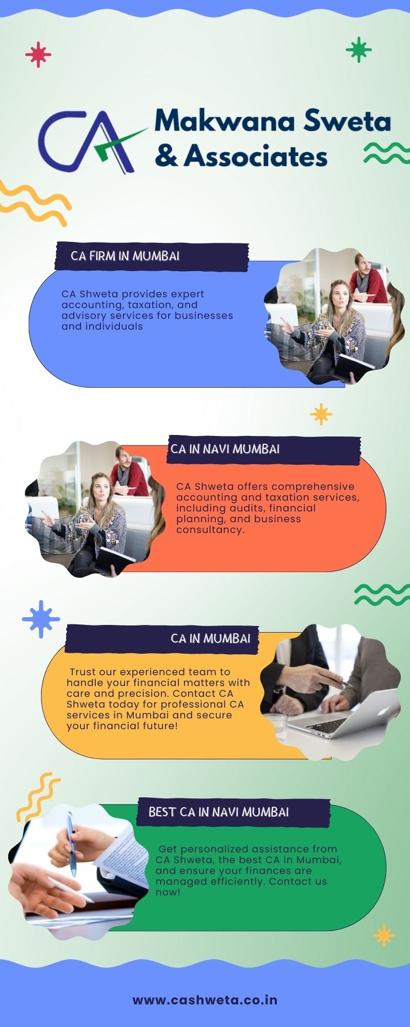 Searching for the best CA in Mumbai? CA Shweta provides top-tier accounting, tax, and financial services to help businesses grow. With years of experience and in-depth expertise, we offer tailored solutions for your financial needs. Get personalized assistance from CA Shweta, the best CA in Mumbai, and ensure your finances are managed efficiently. Contact us now!