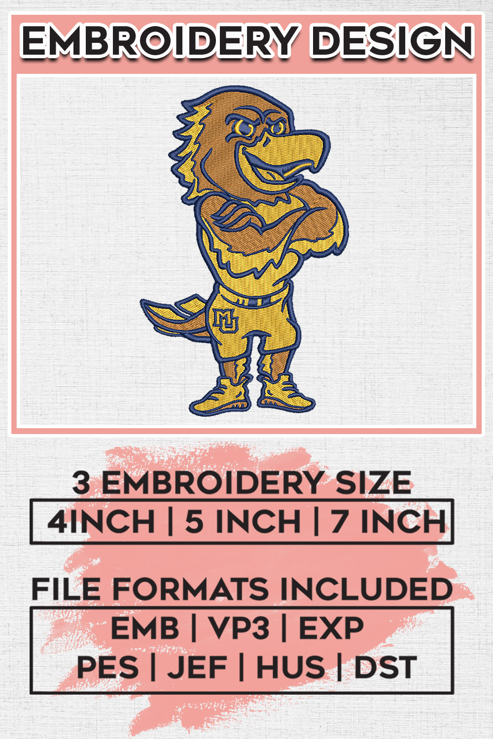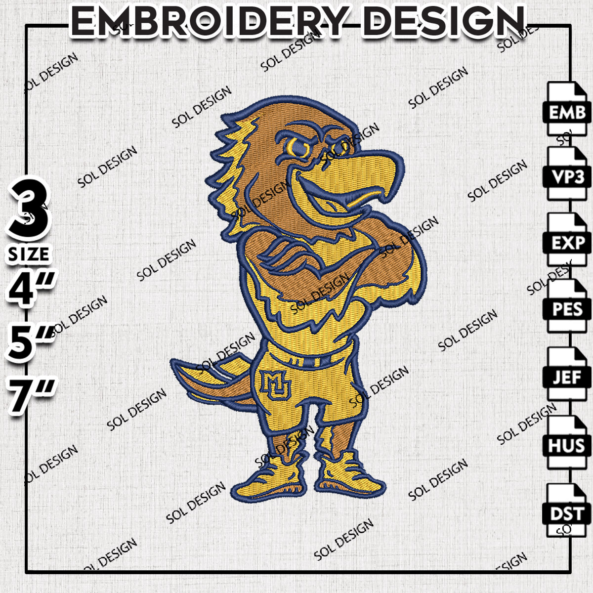 Funny Marquette Golden Eagles College Football Team Mascot Logo Embroidery Designs, NCAA Marquette Golden Eagles Machine Embroidery Files, NCAA Logo embroidery designs, NCAA Marquette Logo, Digital Download