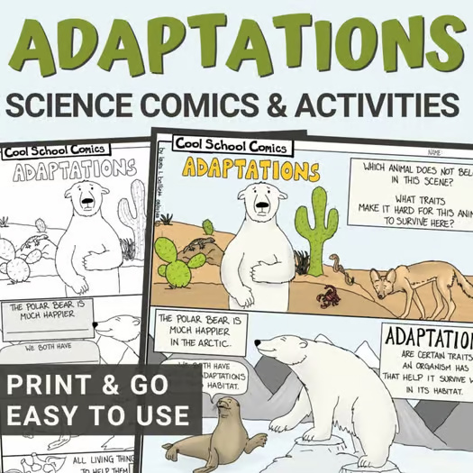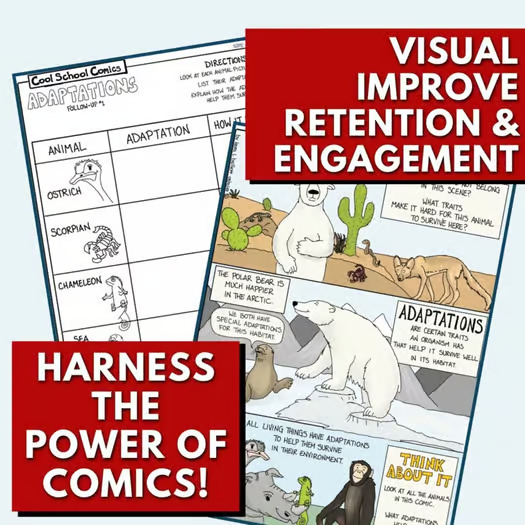This comic-style animal adaptations resource is a game-changer for teaching 3rd–5th grade science! It goes far beyond a simple coloring page by combining NGSS-aligned science content, visual storytelling, and interactive learning strategies to deepen student understanding of animal adaptations and survival.