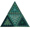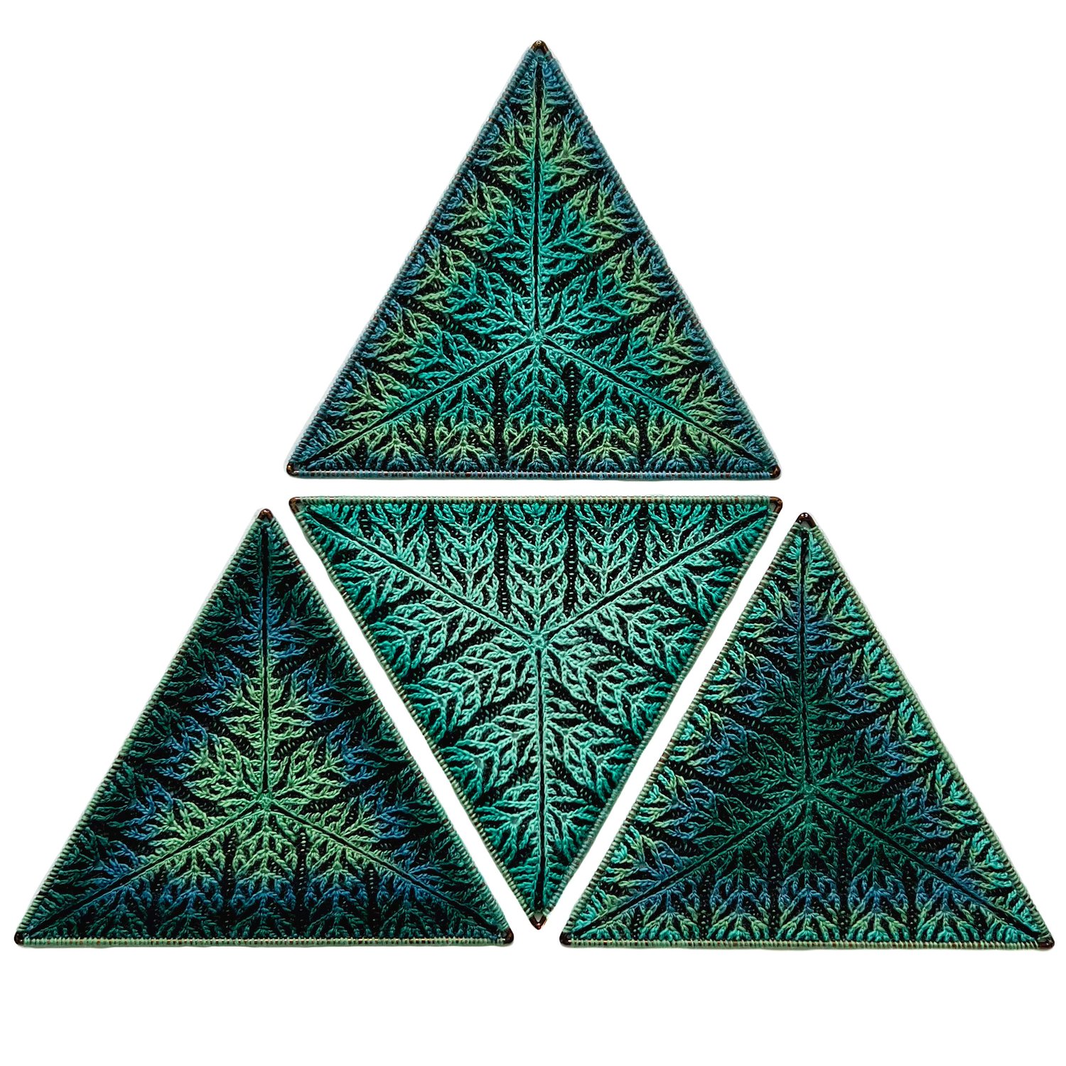 The equilateral triangle shape is very modular and can be used singly or combined to create larger pieces. However, please note that the edges of the Dendritic triangle are slightly scalloped when not attached to a frame.