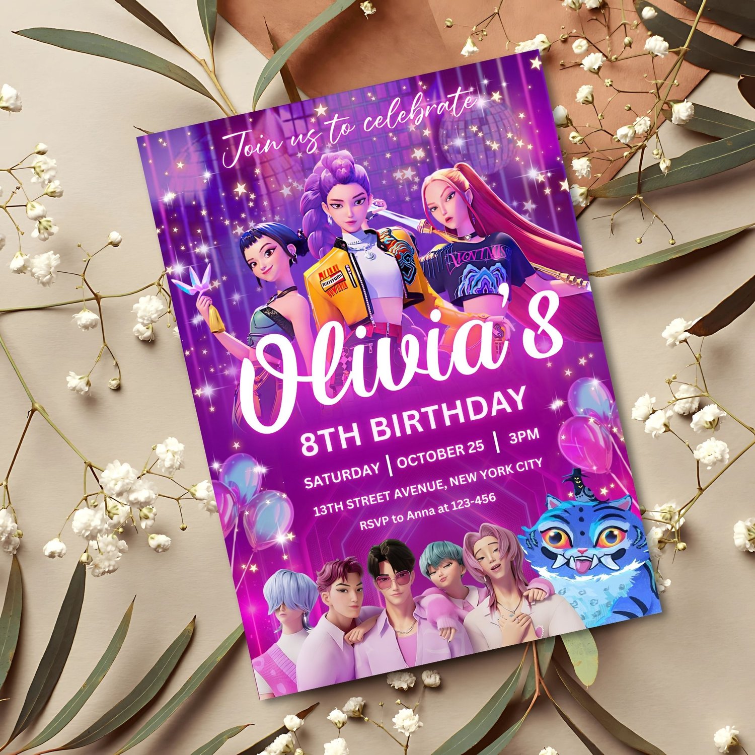 Ideal for teen birthdays, K-pop themed parties, anime celebrations, or any fan-inspired event. Use it as a digital invitation or print it at home or professionally.
