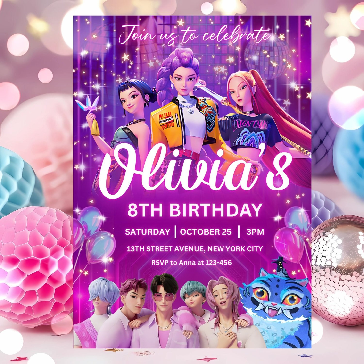#KPopInvitation #KPopBirthday #DemonHunterParty #AnimeBirthday #EditableCanva #CanvaInvitation #DigitalInvitation #PrintableInvite #BirthdayInviteTemplate #TeenPartyIdeas #KPopParty #AnimePartyInvite