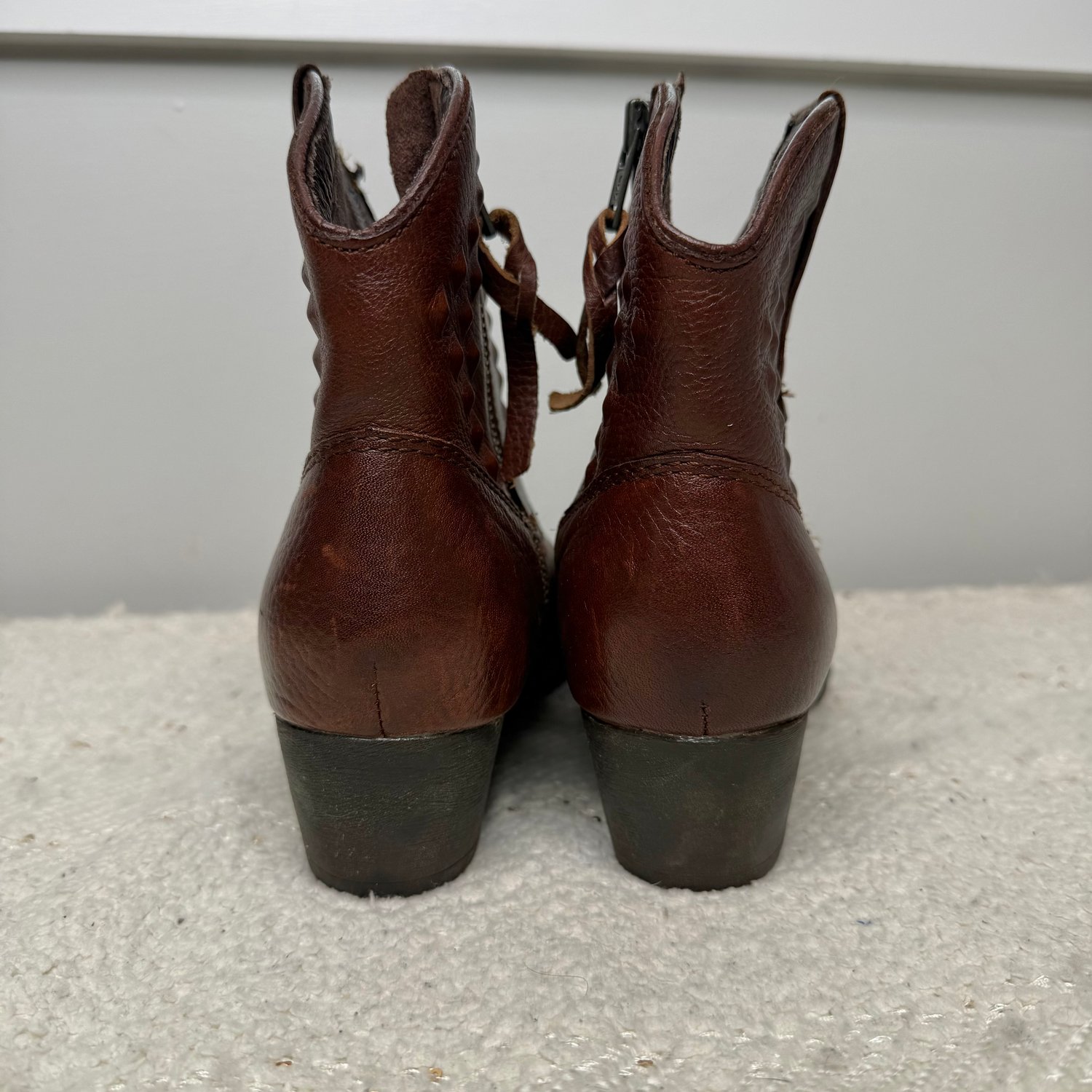 Gently used, light wear to soles, distressing to toes and backs of the boots.