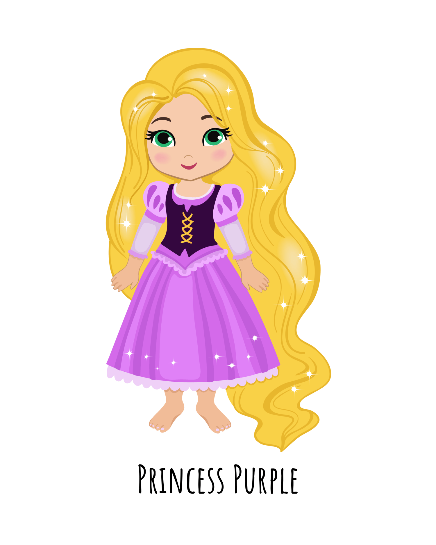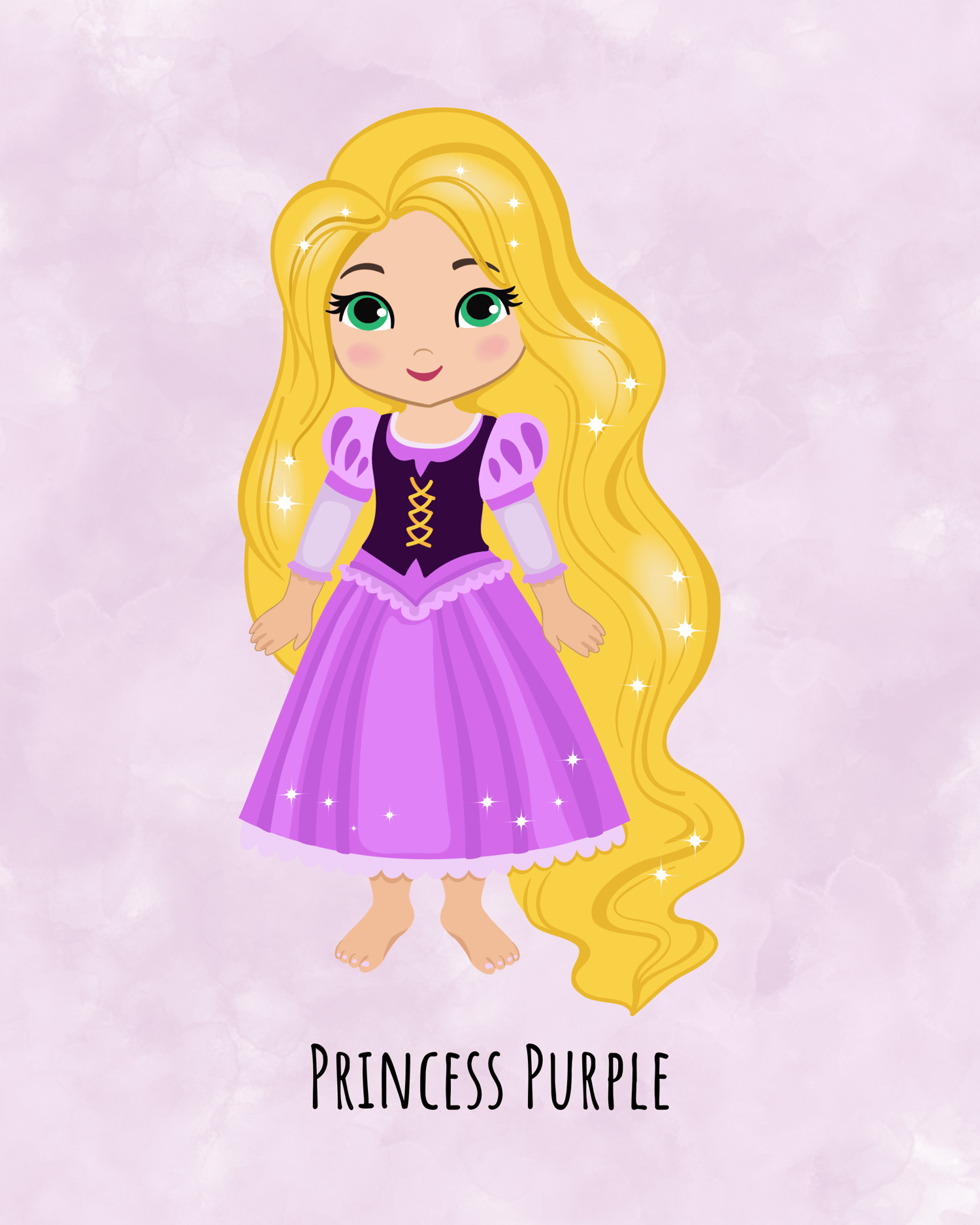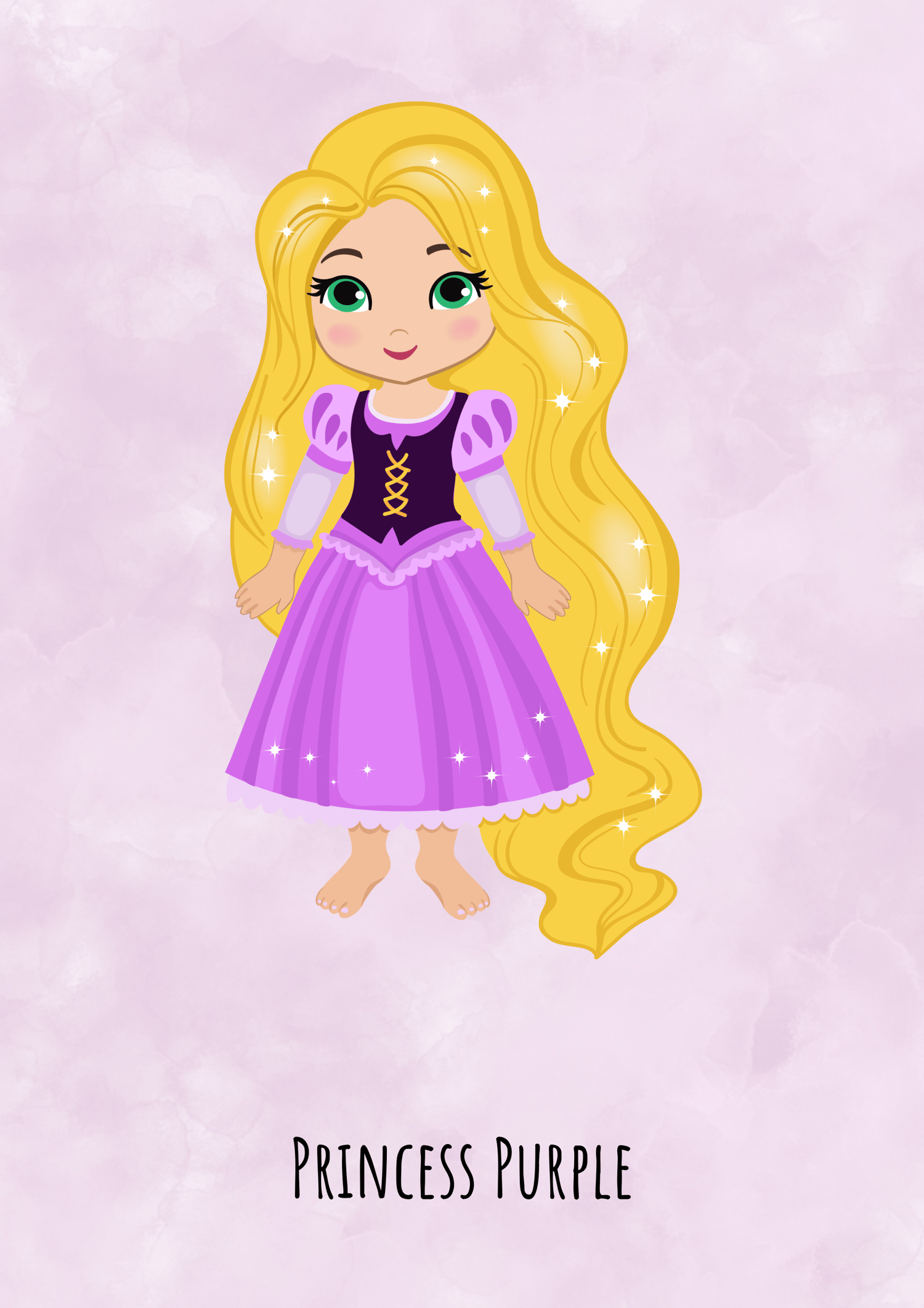 Beautiful Princess with Long Blond Hair and Sparkles with text “Princess Purple”–Set of 2 Digital Download Prints-Lovely Nursery Art Wall–Pretty Princess Wall Art-Princess with Blond Hair-Cute Baby Gift ideas-Lovely Nursery Girl Ideas-Lovely Baby Gift