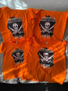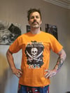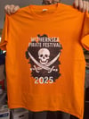 Adult Withernsea Pirate Festival 2025. T-Shirts are a great way to celebrate the event and to keep forever as a cherished memory. These are available in may sizes,(unisex) with the orange t-shirt and DTF transfer of the logo, all created by us for you.