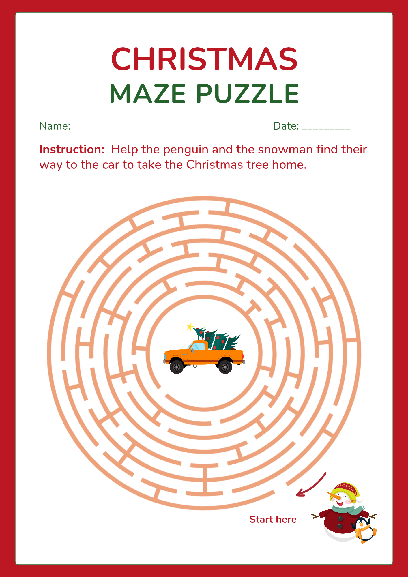 Christmas Maze Puzzle – Fun Holiday Activity for Kids & Family
