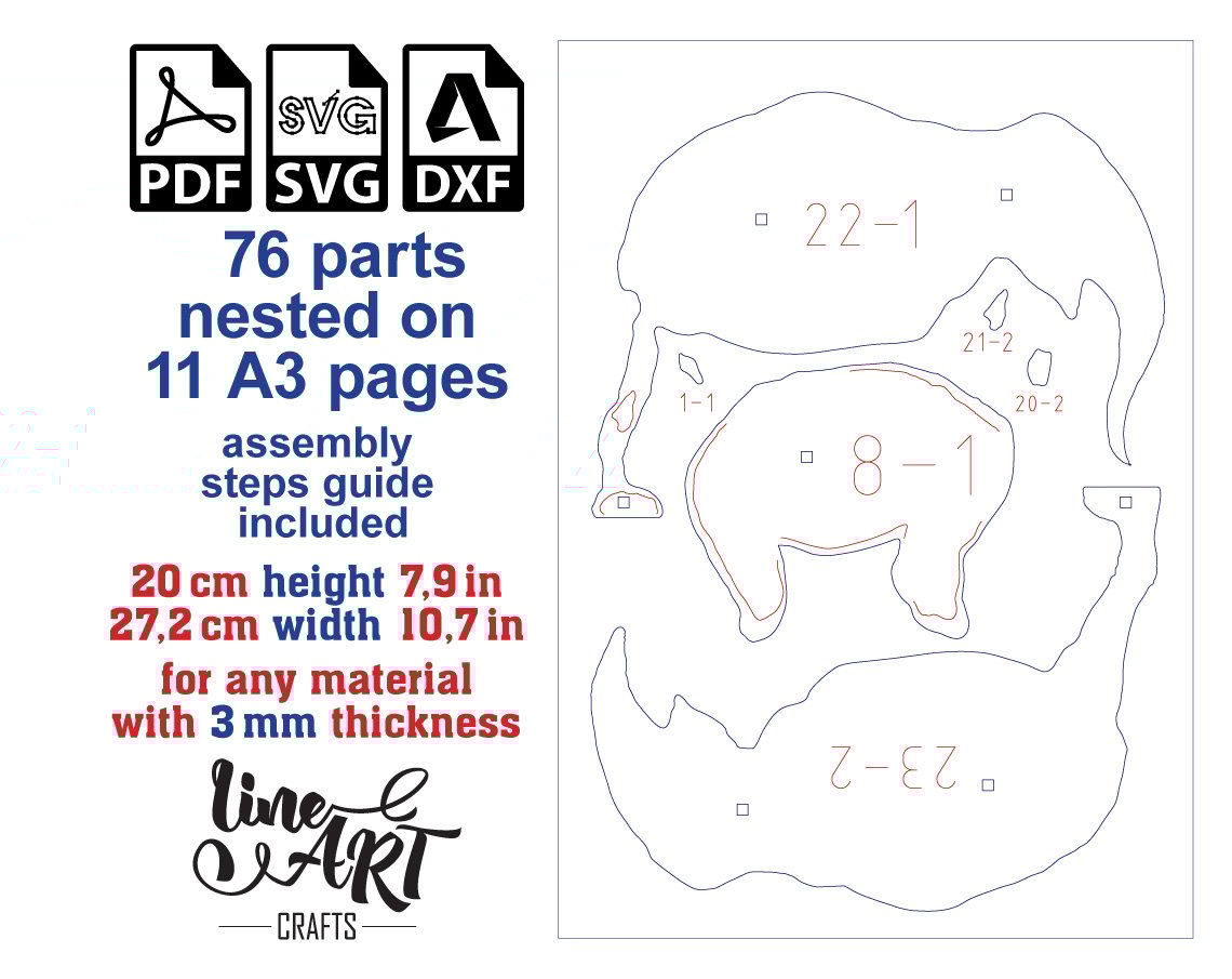 This is not a physical product. This is a vector template to make your own sculpture out of any material with 3 mm thickness (like plywood, mdf, acrylic, cardboard, etc.) with laser cutter or scroll saw.