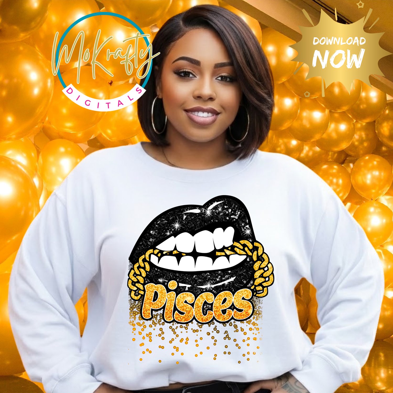 Turn heads with this Pisces Lips digital PNG featuring glossy black lips, gold chain accents, and dripping gold Pisces lettering. This high-resolution glam zodiac design is perfect for apparel, tumblers, stickers, and custom merchandise. Ideal for personal use or small business physical products.