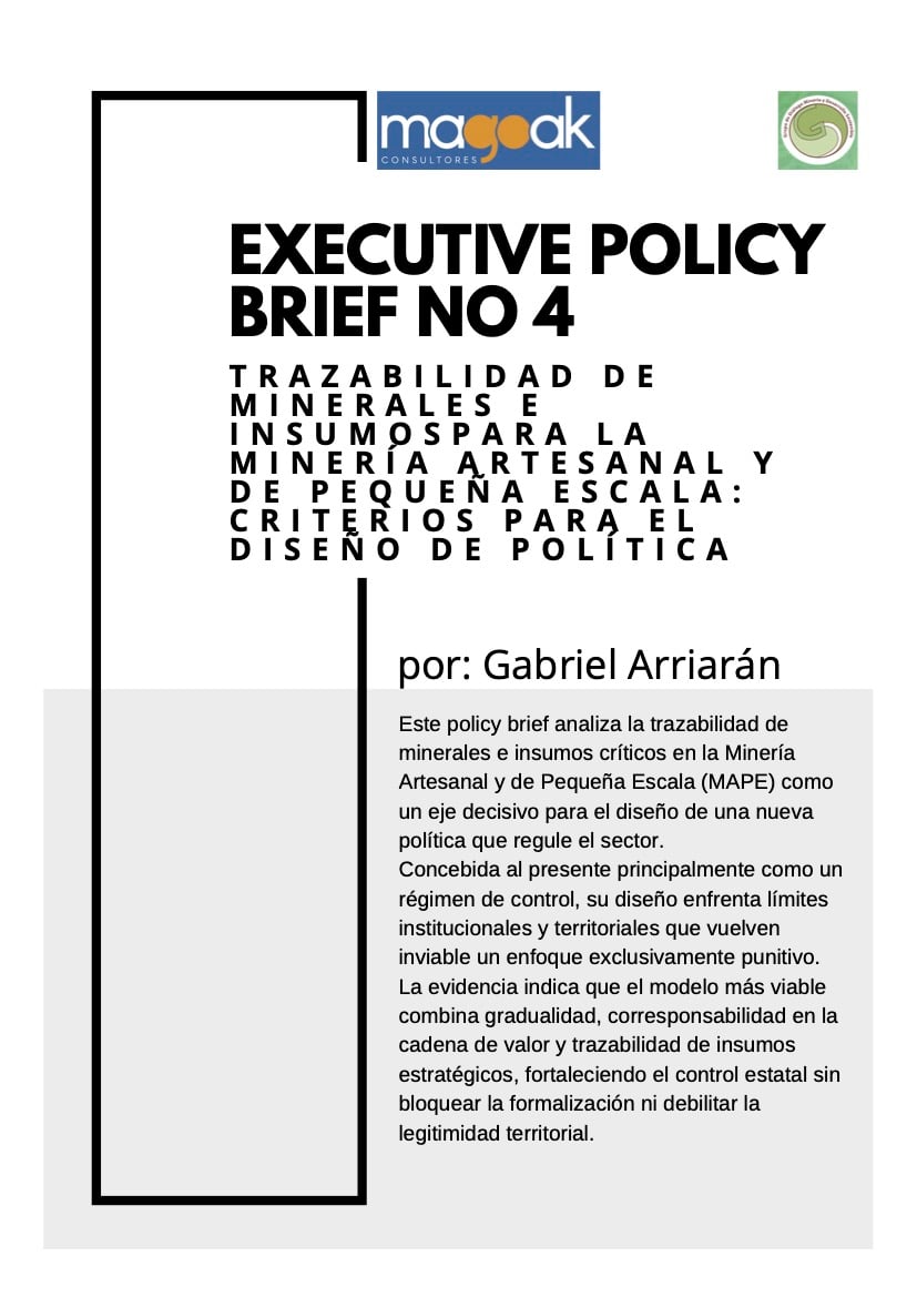 Este policy brief analiza la trazabilidad de minerales e insumos críticos en la Minería Artesanal y de