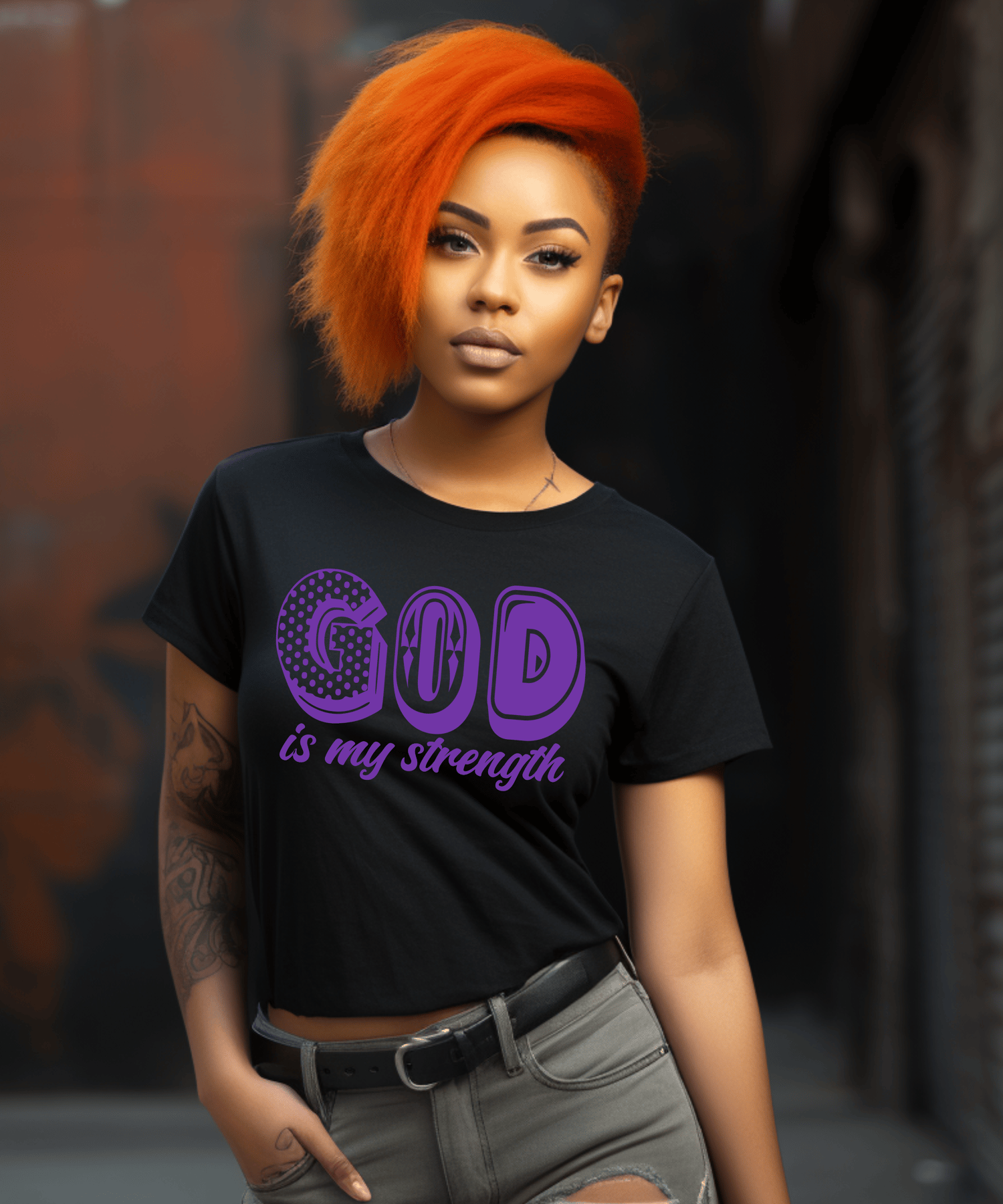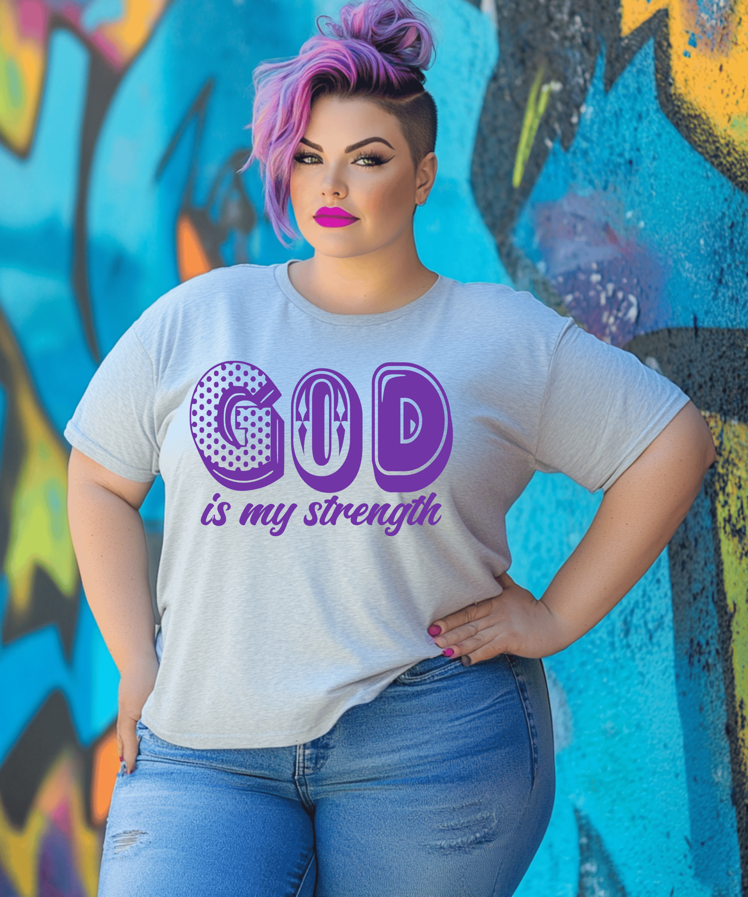 God is My Strength β a bold and empowering Christian design in vibrant purple tones, perfect for expressing your faith with confidence and style!