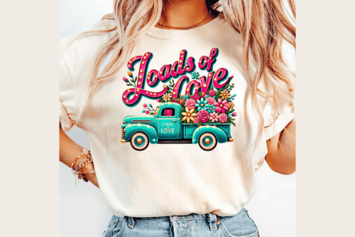 Loads of Love Floral Car T-Shirt Sublimation Design