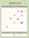 - Monthly Log: Reflect on your month with dedicated pages to assess your progress, plan events, and highlight achievements.