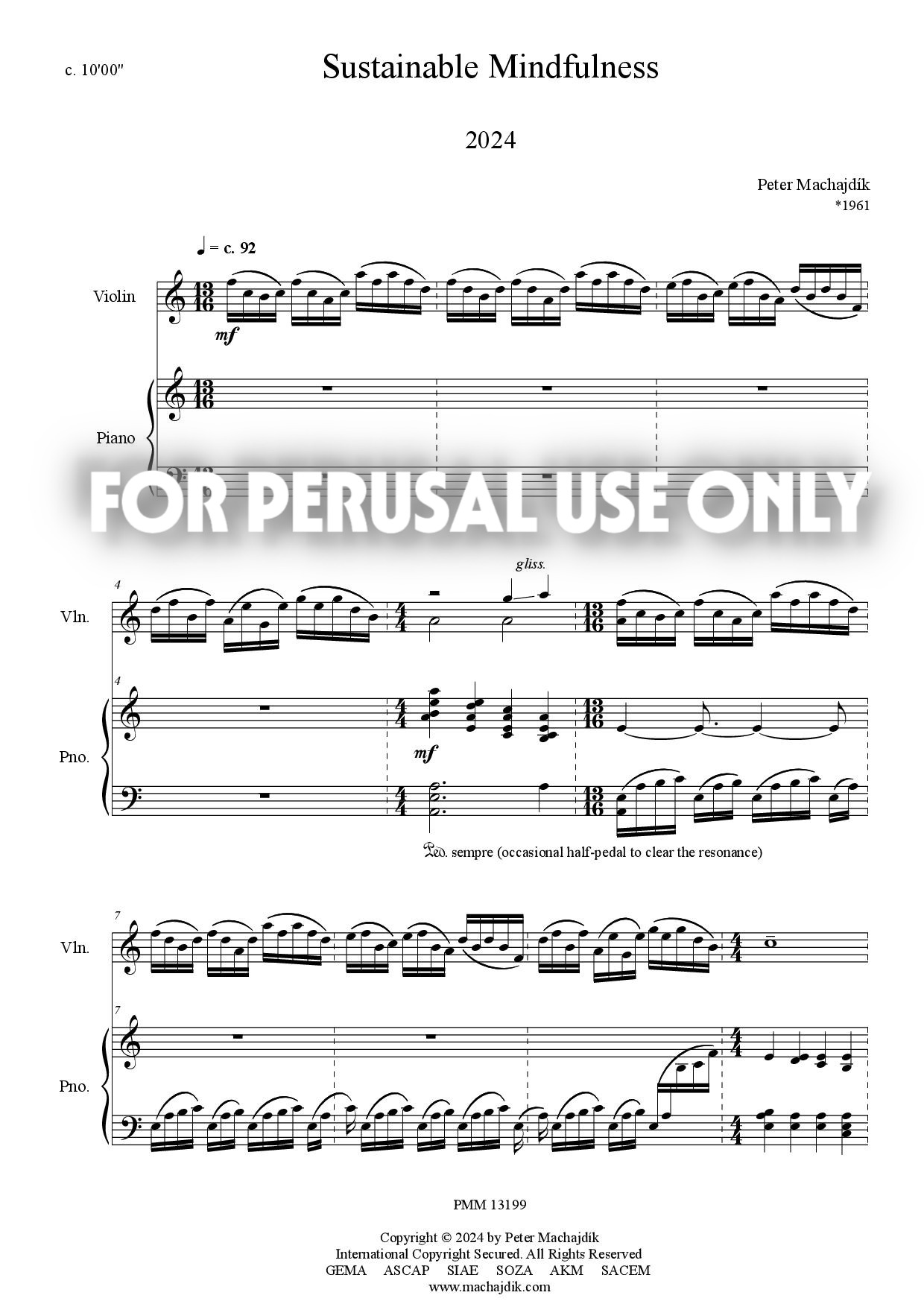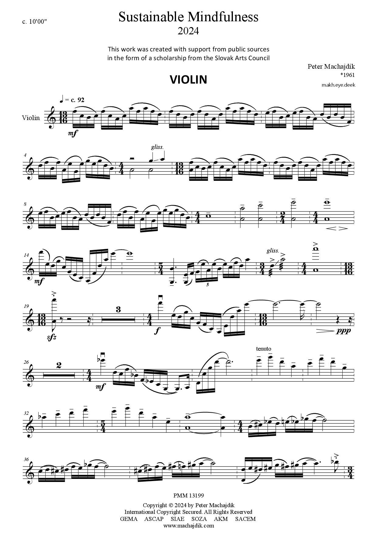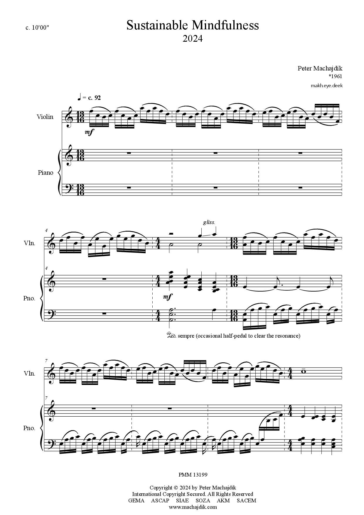 Peter Machajdík: SUSTAINABLE MINDFULNESS for violin and piano (Digital Sheet Music) [score and parts]