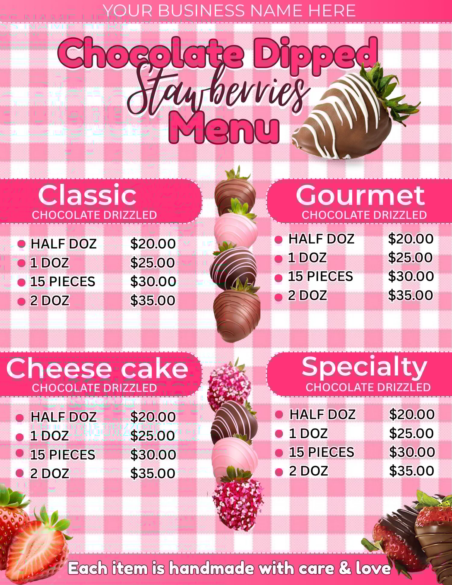 🍓🐰 Editable Chocolate Dipped Strawberries Menu + Market Banner Canva Template Set 🐰🍓
