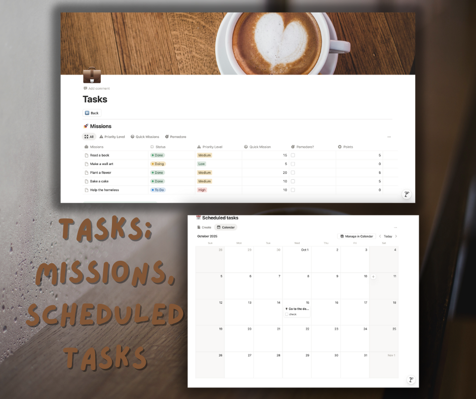 πΌ Tasks β includes missions and scheduled tasks to stay on track