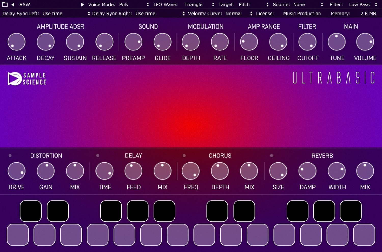 - 3 voice modes: polyphonic, monophonic, and legato