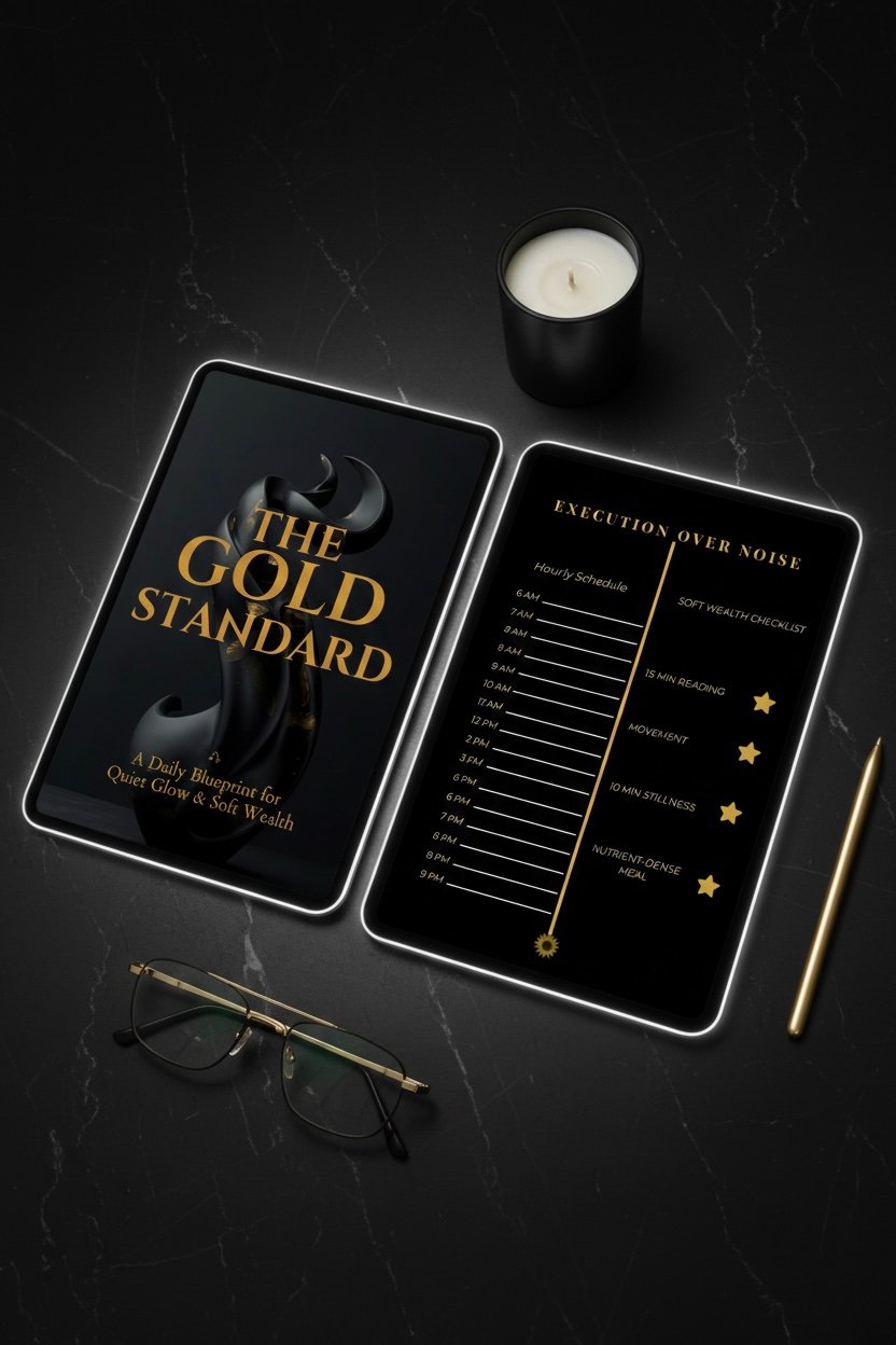 • Soft Wealth Checklist: Integrated daily habits including 15 minutes of reading, movement, 10 minutes of stillness, and nutrient-dense fueling to ensure your vessel matches your ambition.