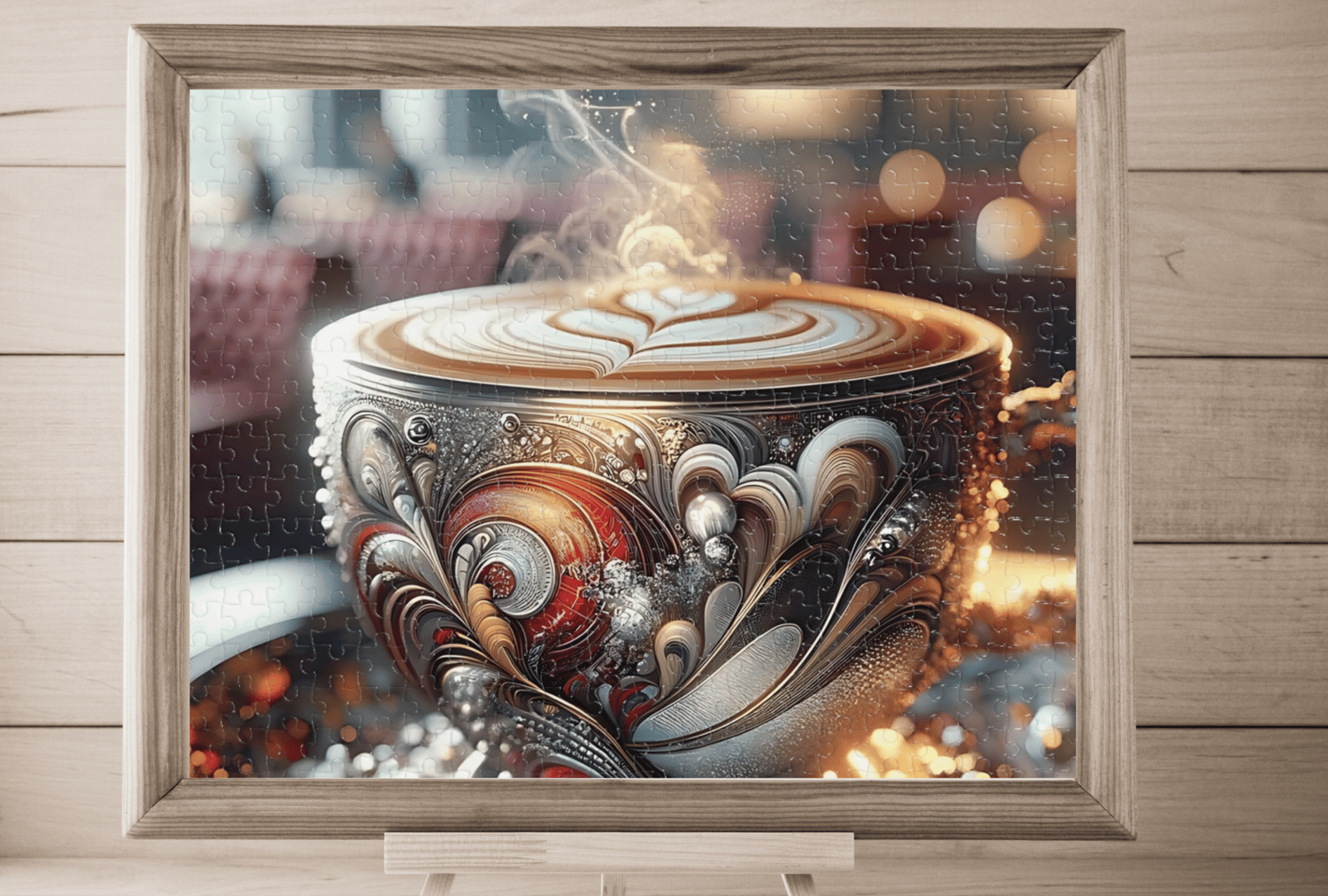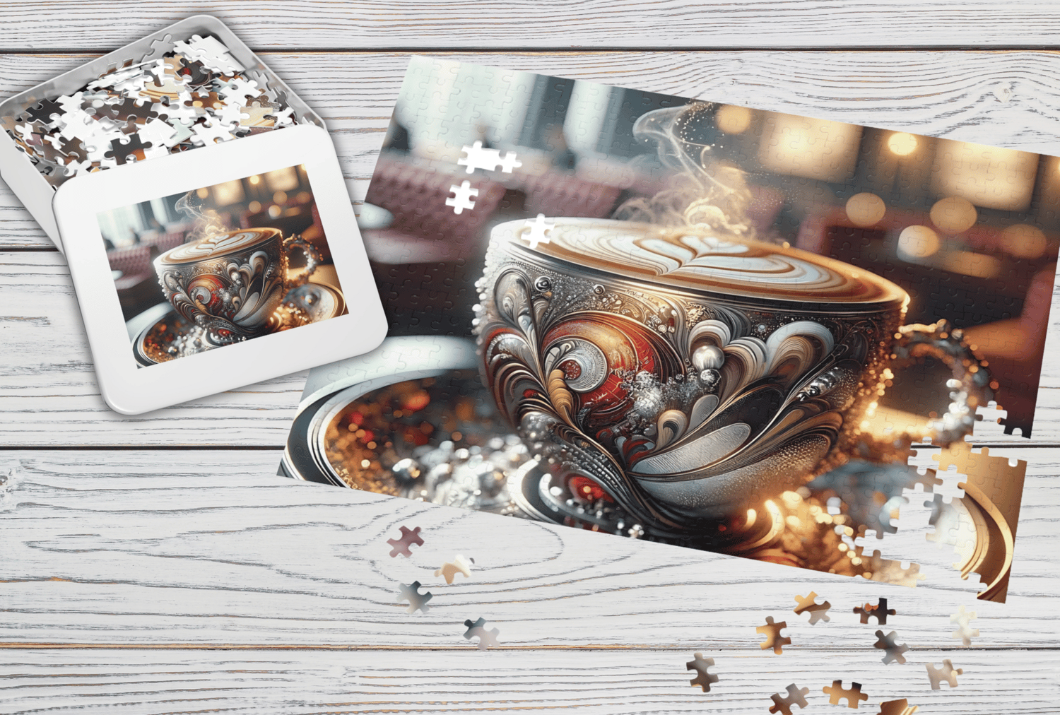 Elevate your puzzle experience to new heights with "Caffeine Symphony The Baroque Mocha" puzzle. This exquisite design captures a moment of pure bliss as a sumptuous mocha swirls inside an ornately decorated cup, exuding steam and splendor in equal measure. Each puzzle piece is a step into a world where every sip is a taste of luxury, and every detail is steeped in artistic tradition. Choose from the stately 1000-piece edition for an immersive challenge or the refined 500-piece set for a more relaxed yet equally satisfying session. Ideal for those with a penchant for the finer things in life, this puzzle invites you to lose yourself in the intricate elegance of a baroque masterpiece and the comforting embrace of a coffee break turned into an art form.