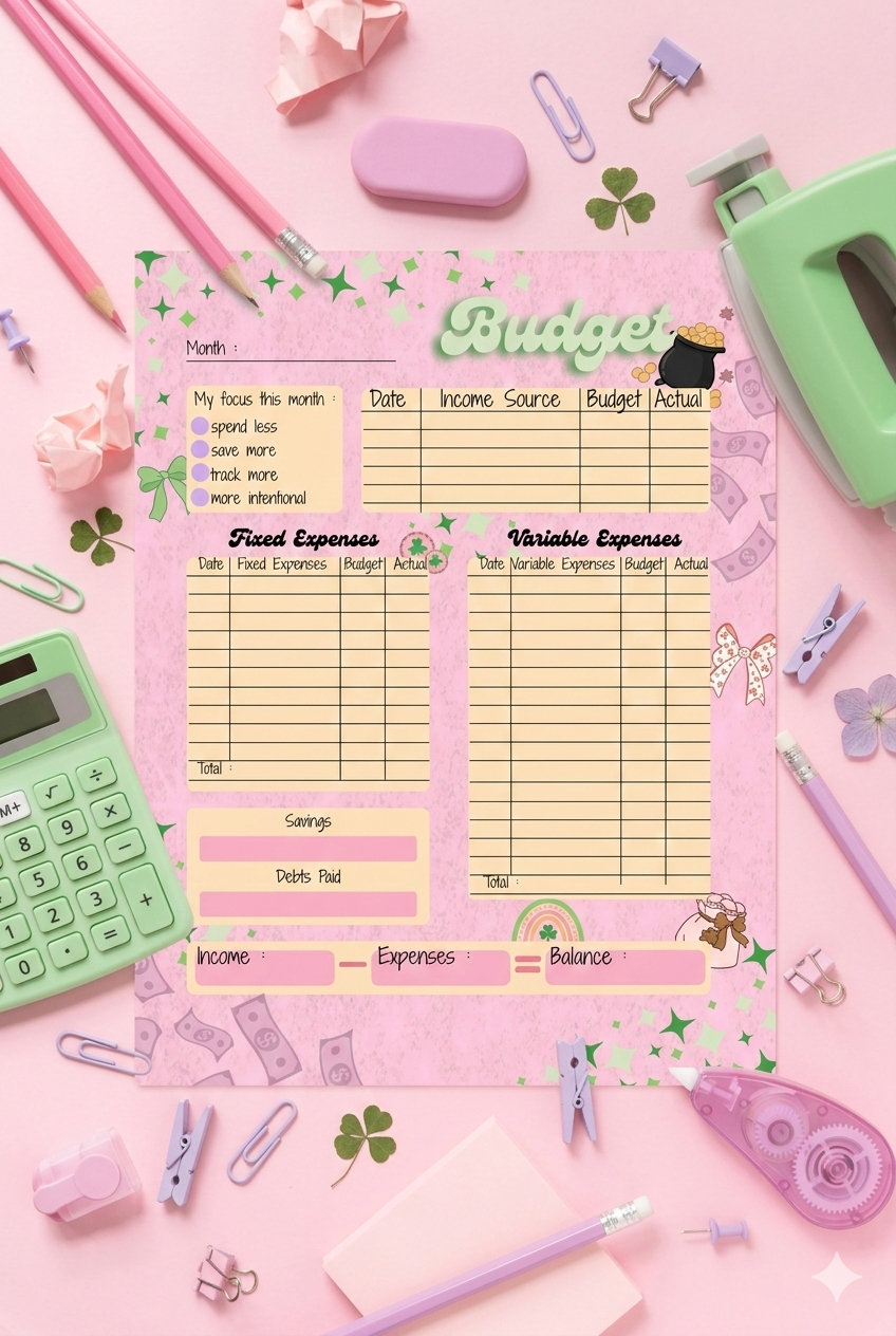 - Sections Included: Income, Fixed & Variable Expenses, Savings, and Debt. 💸