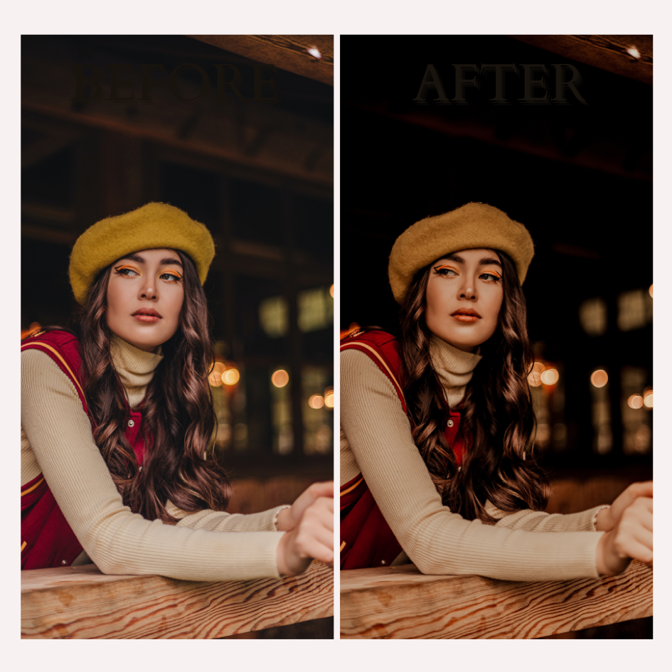 - 12 Unique Presets: A versatile collection tailored to different lighting conditions and scenes, ensuring the perfect moody brown vibe for every photo.