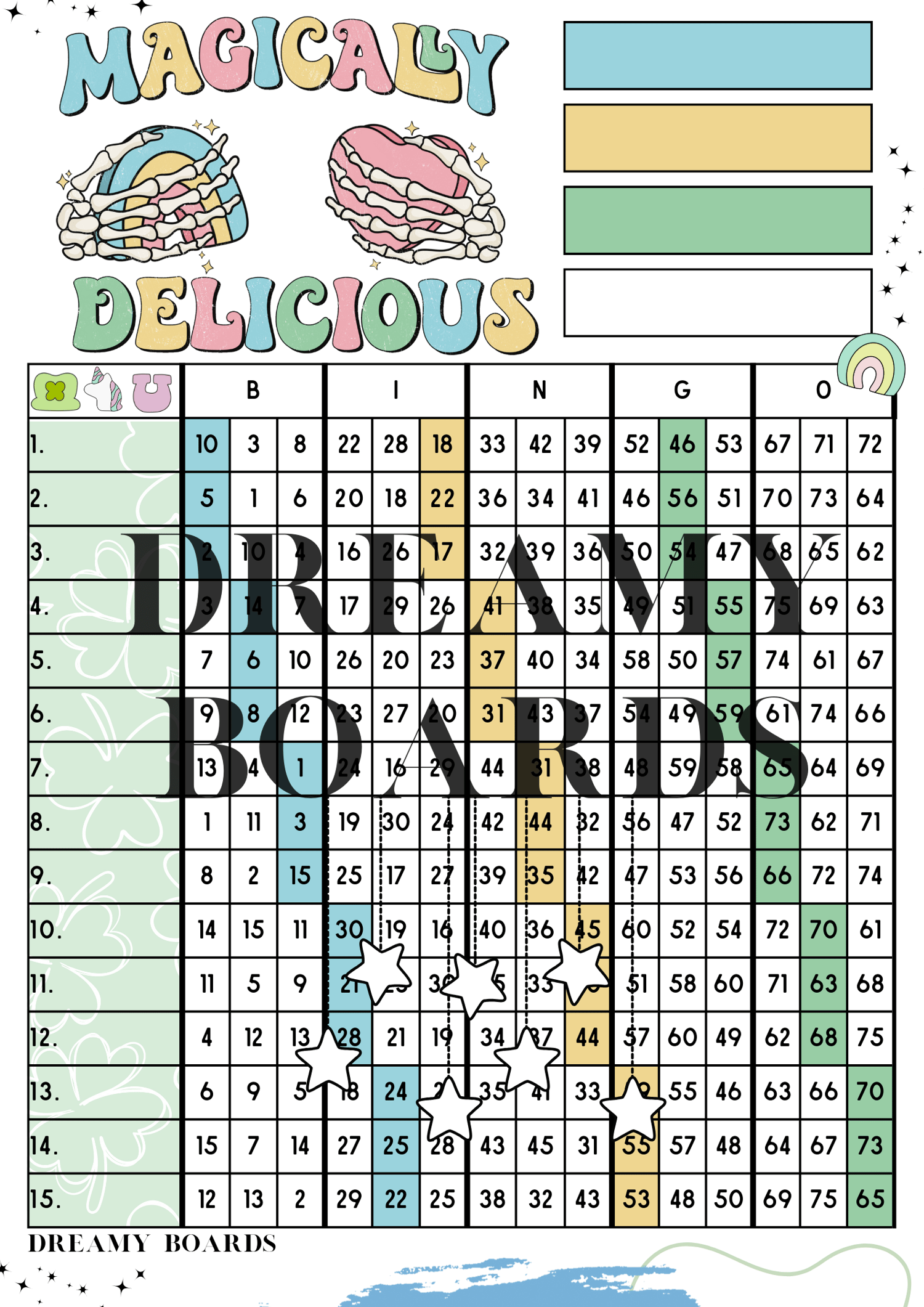 - Printable bingo board.