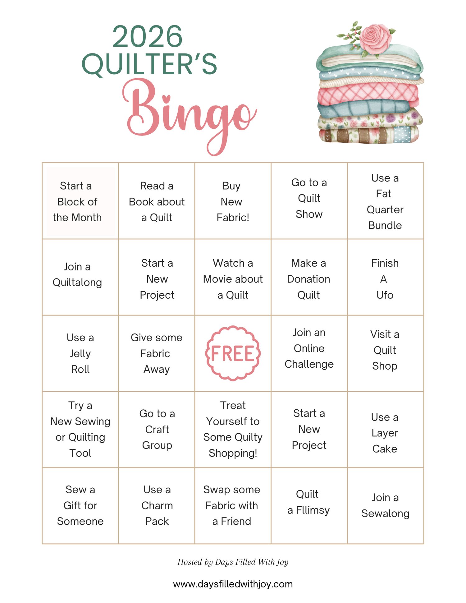2026 Quilter's Bingo