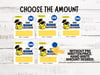 -1 Card on 8.5x11 sheet (all dollar amounts and blank dollar amount)