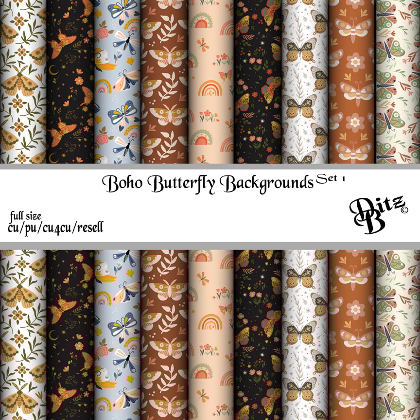 Boho Butterfly Backgrounds Set 1