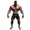 - Two muscular male figures with different builds (one bulkier with a beard, one lean and athletic)