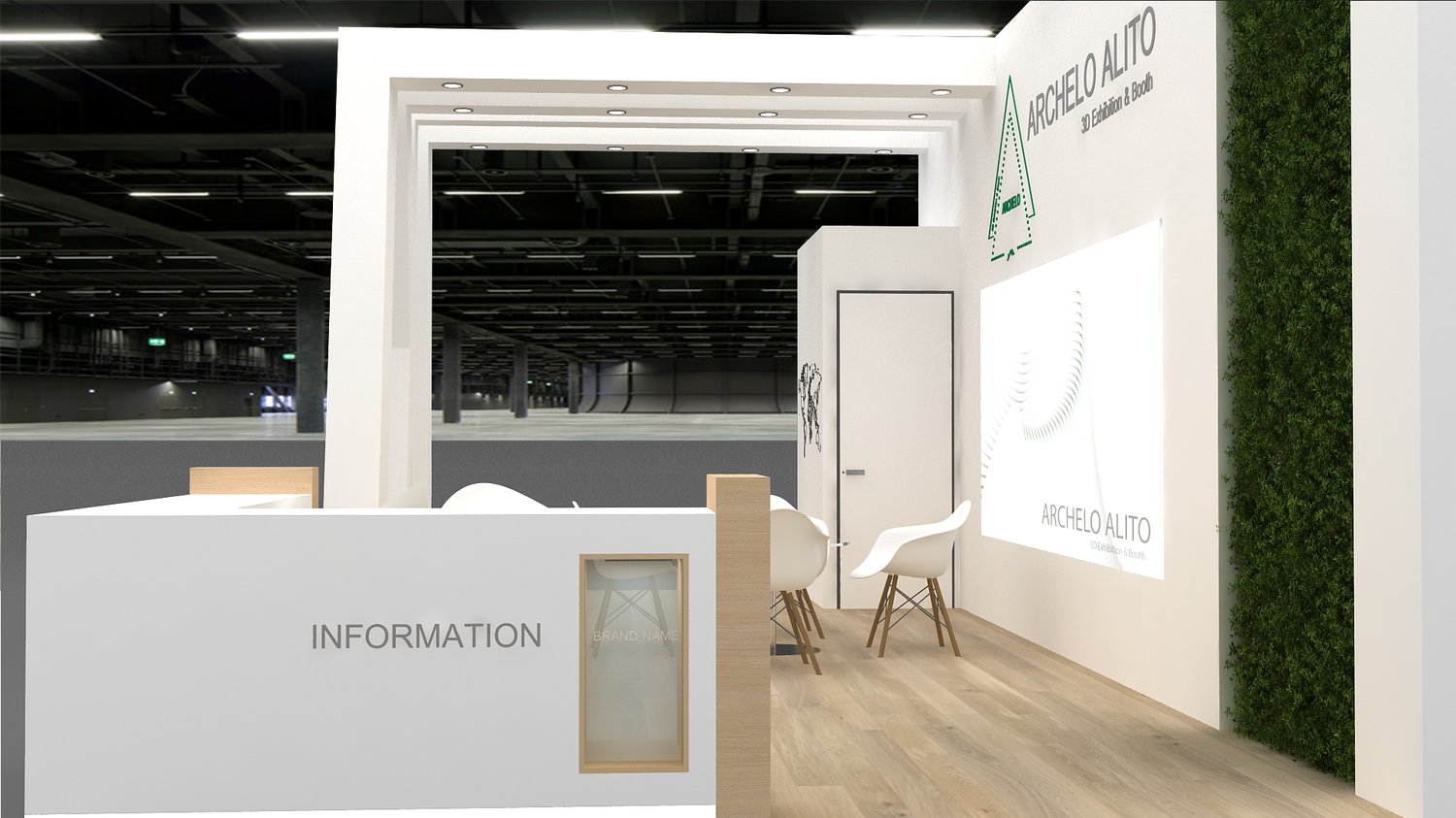 include design all necessary area in Exhibition and Booth Such as Vip and Storage and Counters and also Stand for products