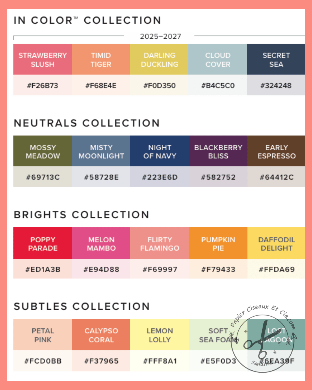 Valeur Hex des couleurs Stampin'Up