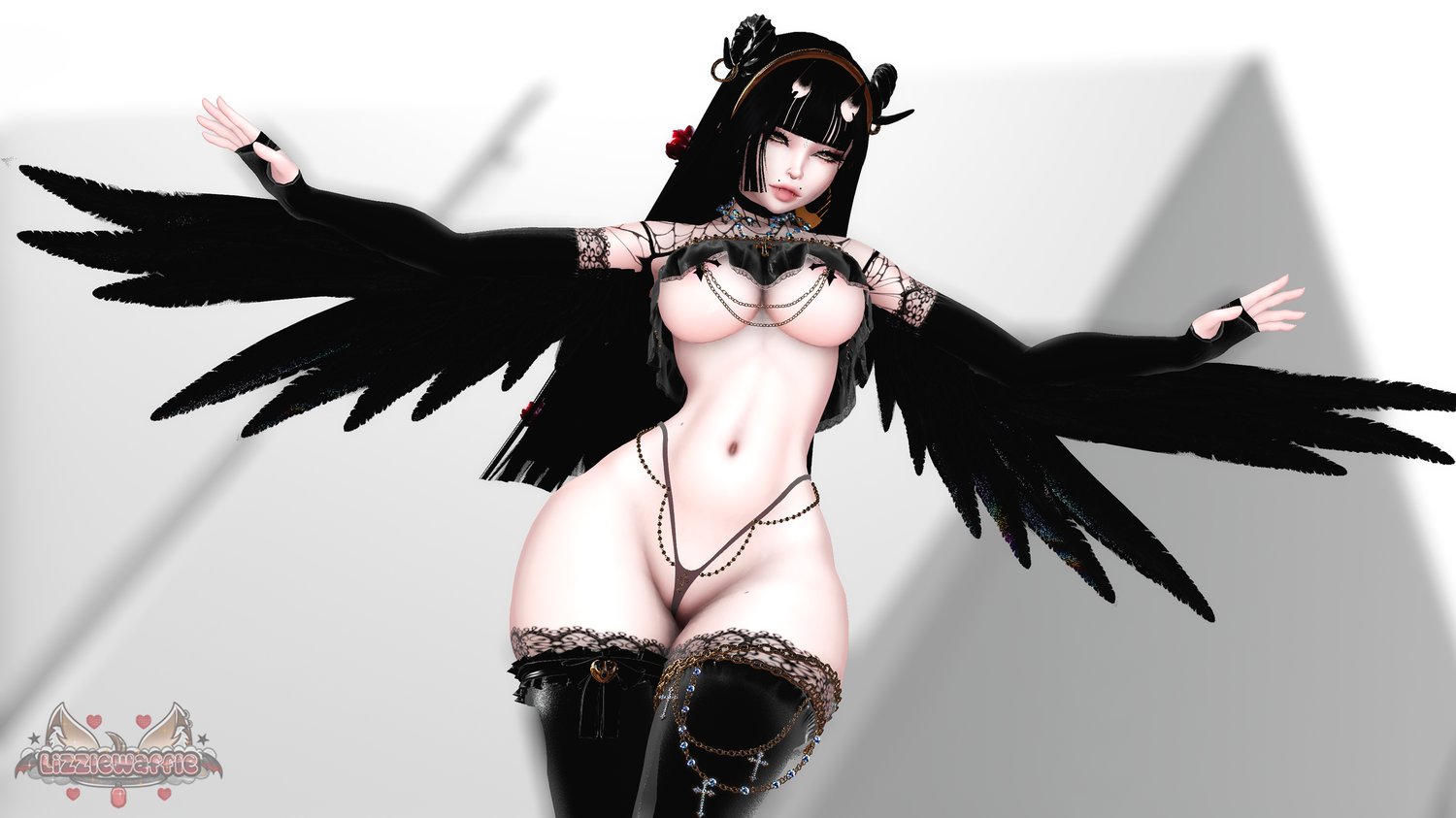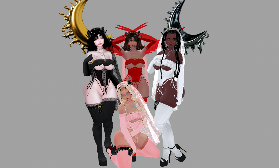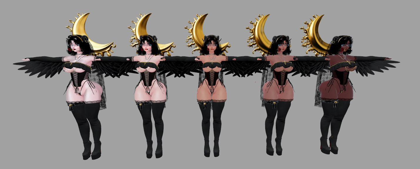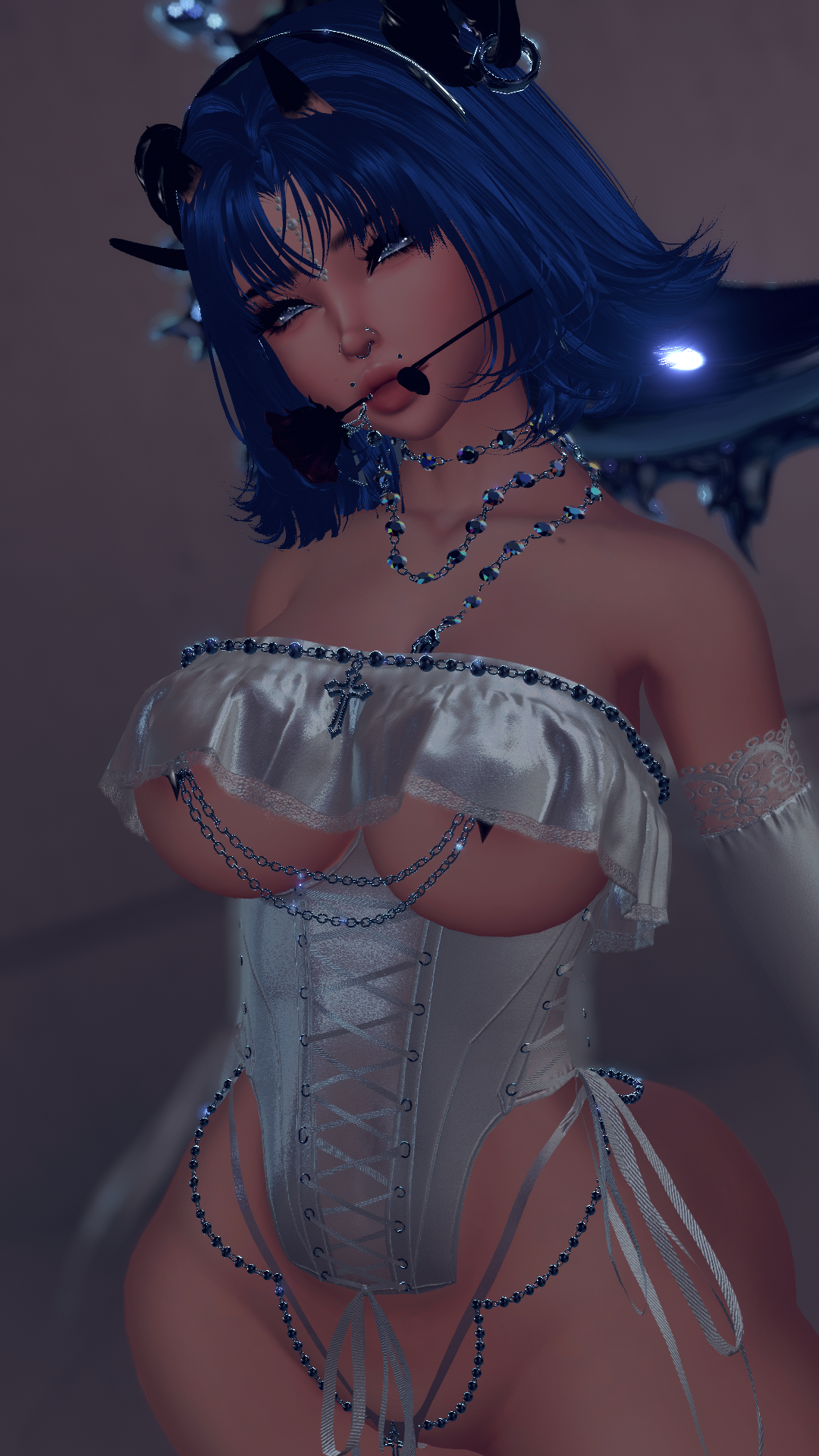 Accessories: Veil, Necklace, Piercings (Face, Back, Chest), Garters, Pasties ,Glasses