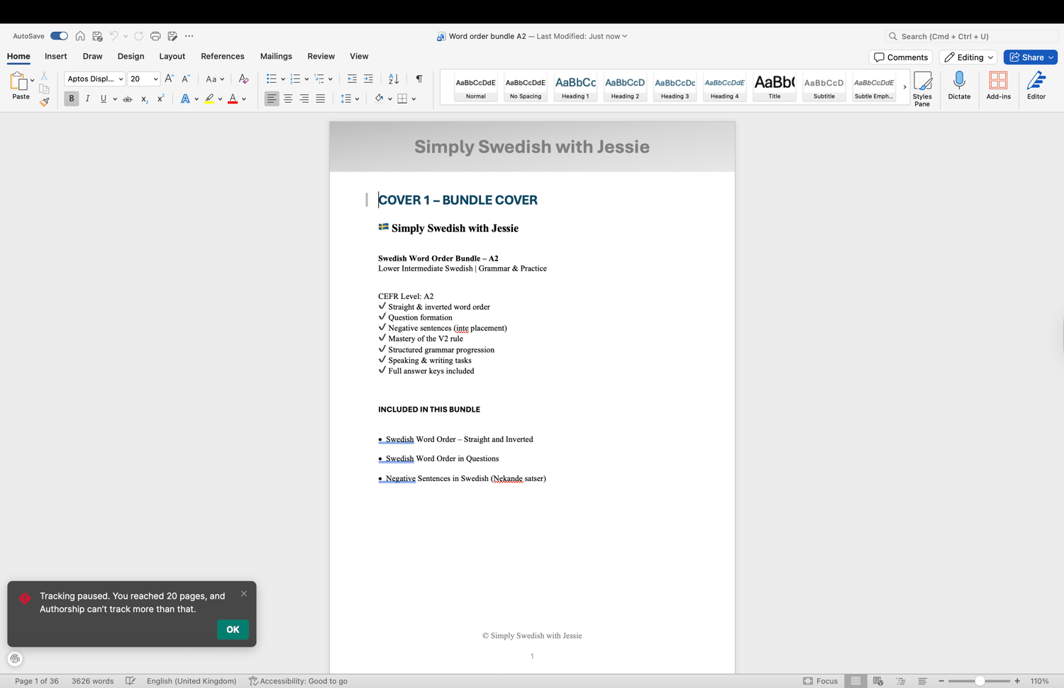 This bundle provides a complete and structured approach to Swedish word order at A2 level, helping students move from basic sentence construction to confident, accurate communication.