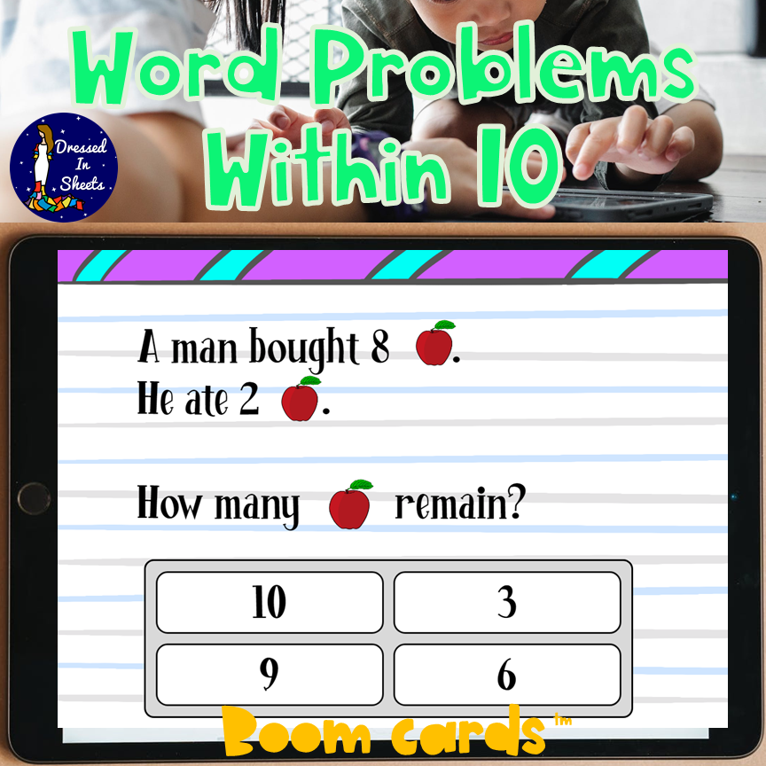Word Problems: Adding and Subtracting within 10 BOOM Cards