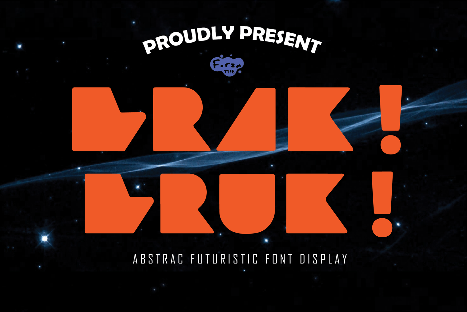 BRUK BRAK FONT is a bold display font built from strong geometric shapes and distinctive decorative cuts. Designed for headlines and large-scale visuals, it brings a confident, modern look that instantly stands out. Each letter feels solid and intentional, with rounded corners and clean curves that balance experimental style with readability. The sharp cuts in its anatomy add a futuristic edge, giving the font character without making it feel overdone.