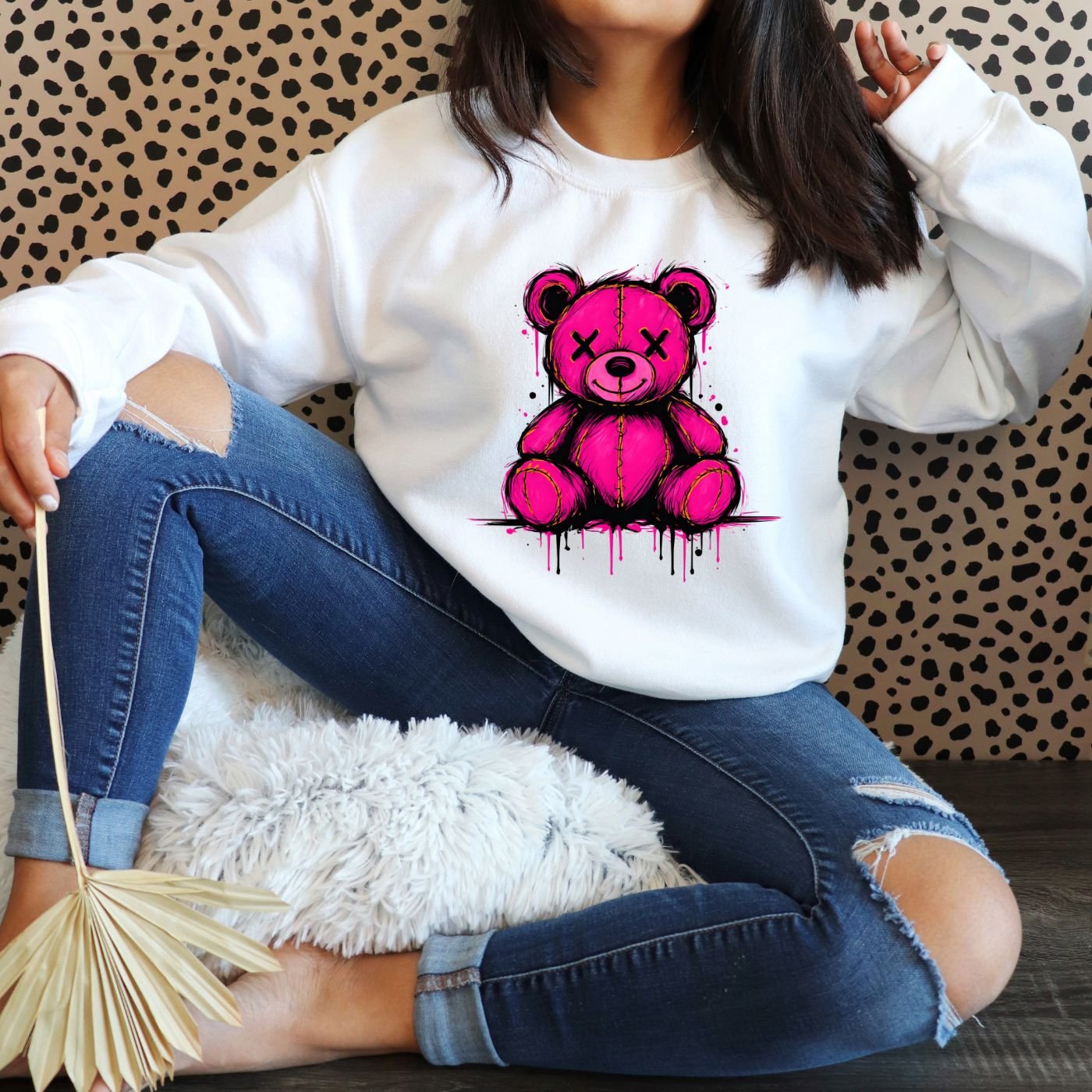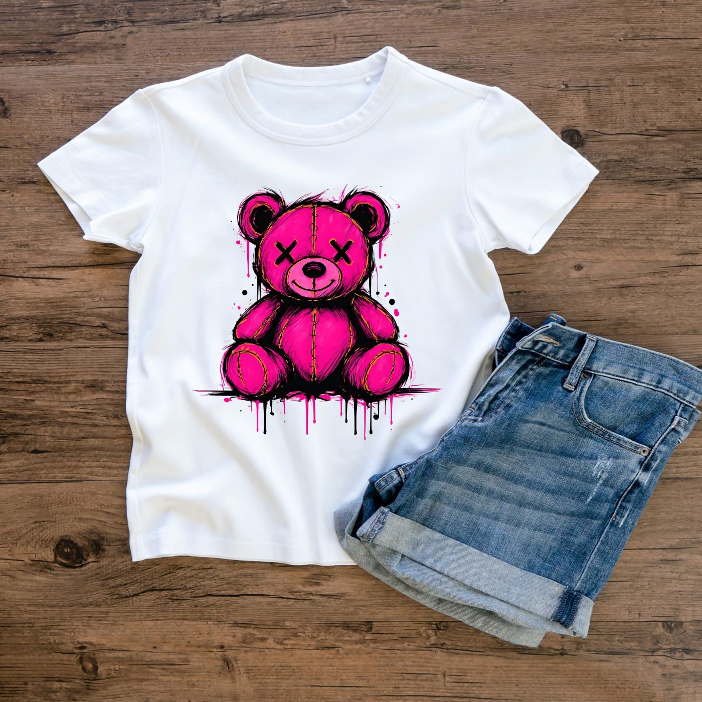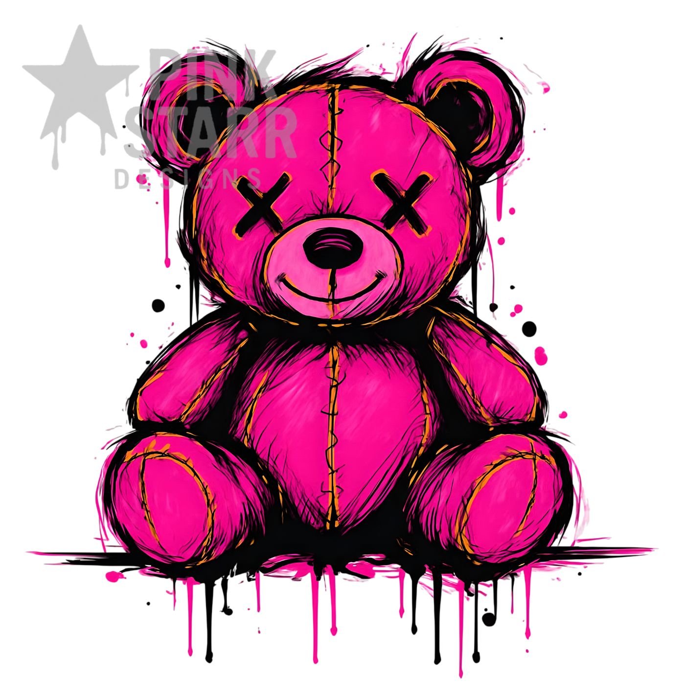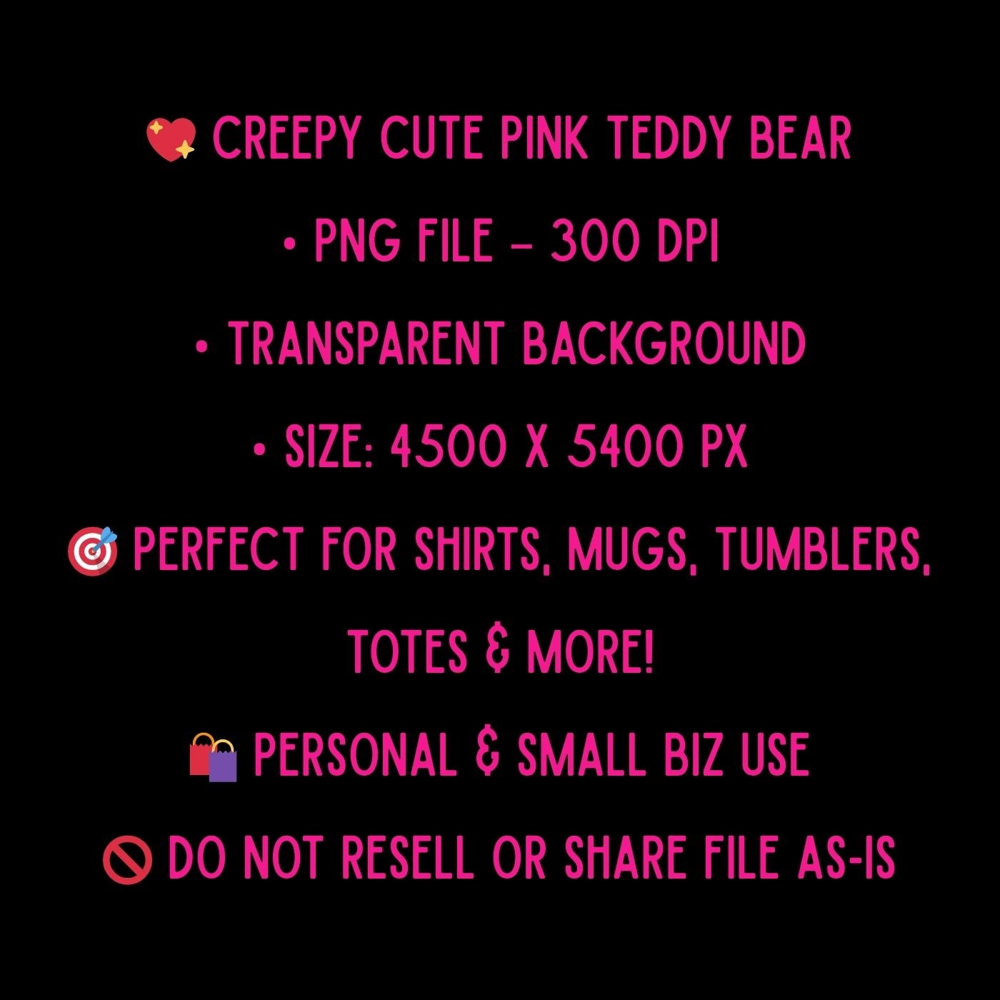 ⭐ Keywords: creepy cute bear, goth teddy, pink horror clipart, stitched plush, kawaii goth png, grunge teddy sublimation, alternative shirt graphic
